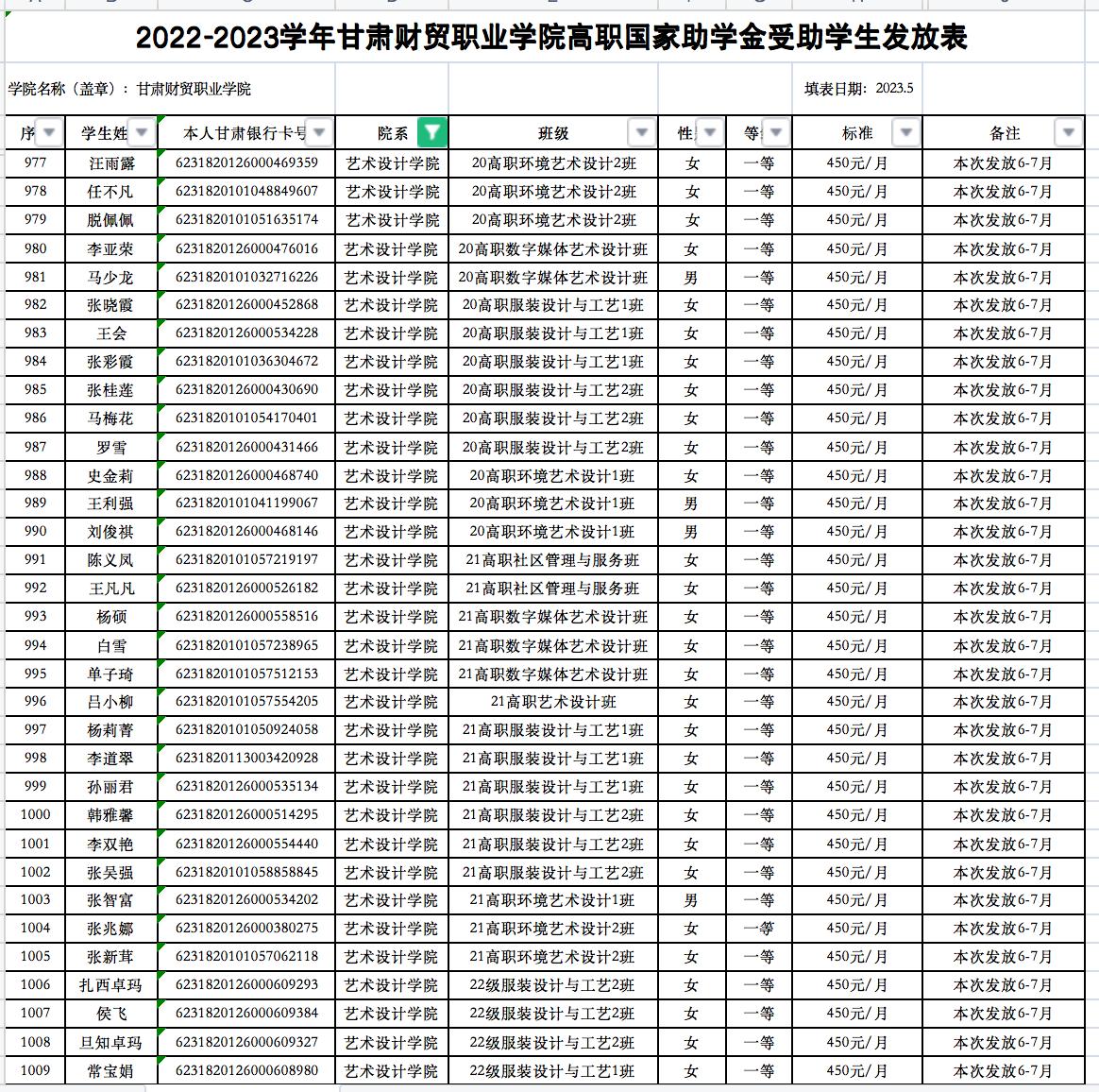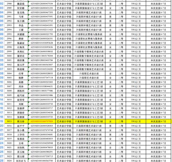 2023年6月12日,班主任配合完成2022-2023学年助学金发放核对。