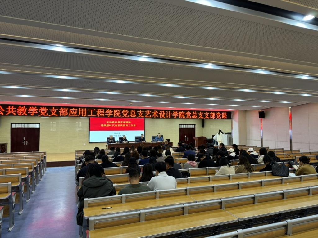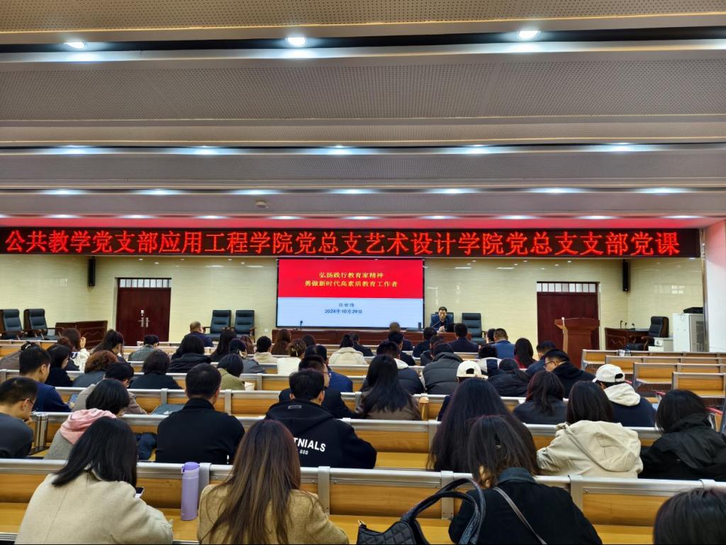 2024年10月29日,艺术设计学院党总支、公共教学党支部、应用工程学院党总支联合邀请学院纪委任世伟书记作了题为《弘扬践行教育家精神 勇做新时代高素质教育工作者》的专题党课。党课由艺术设计学院党总支书记邸维琰主持。艺术设计学院在校全体党员及24年教师入党积极分子、24年新入职教师参加了党课。