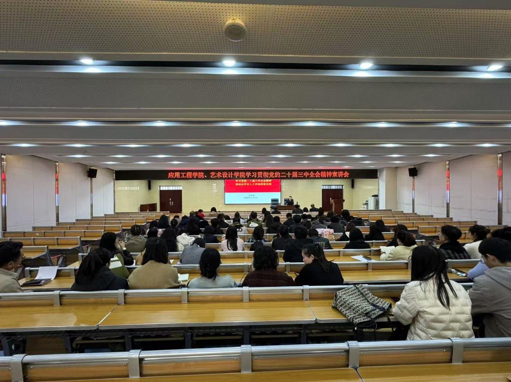 2024年11月7日14:30分,艺术设计学院党总支、应用工程学院党总支在一号教学楼西报告厅联合邀请学院纪委任世伟书记作了题为《学习贯彻二十届三中全会精神 推动办学育人工作高质量发展》的专题党课。艺术设计学院和应用工程学院全体教师参加。党课由应用工程学院院长主持。