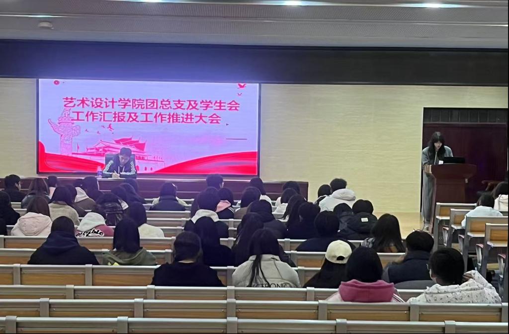 为进一步提升学生干部的工作效率和思想意识,推进学团工作高质量发展。艺术设计学院于11月18日在一号教学楼西报告厅开展团总支及学生会工作汇报及工作推进大会。本次会议由艺术设计学院团总支书记张晋嘉主持,全体学生干部参会。