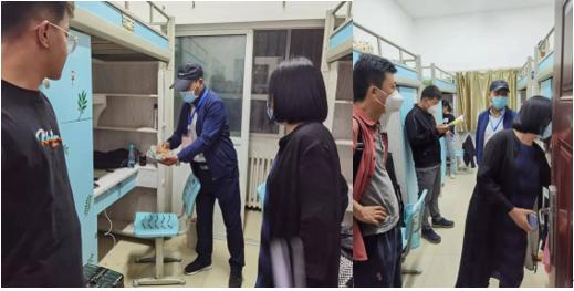 晚上,王小燕院长、邸维琰书记及辅导员一行深入新生宿舍,了解学生生活和饮食等情况。邸书记端起学生正在吃的晚餐,亲切地询问学生对饭菜口味、价格等是否习惯和满意;王院长耐心叮嘱新生,入校后关注天气变化,添减衣物,照顾好自己,遇到问题及时联系老师,希望大家尽快转变角色开始崭新的大学生活。