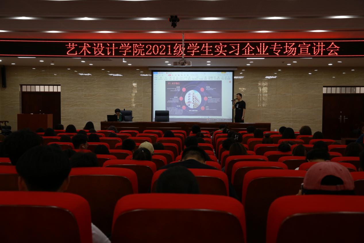 “成就梦想,职通未来”,为切实做好我院2021级学生岗位实习工作。5月30日下午,艺术设计学院在教学楼东报告厅召开了2021级学生实习企业专场宣讲会。学院相关负责人及2021级各班班主任、全体学生出席会议。