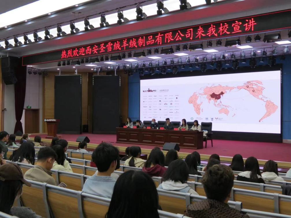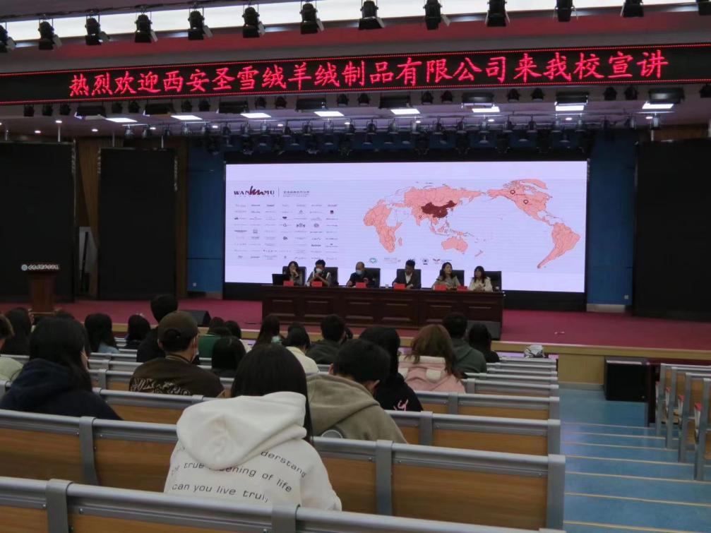 为进一步做好实习与就业工作,实现高校与企业的良性互动,形成实习、就业的紧密链接。3月9日下午,艺术设计学院邀请西安圣雪绒羊绒制品有限公司相关负责人入校园,为我院20、21级学生带来了一堂生动的线上线下同步企业宣讲。