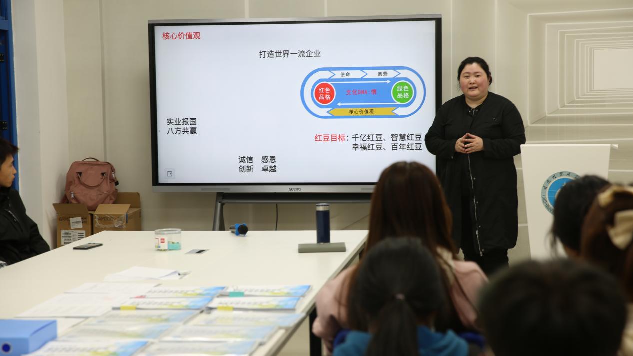 江总无锡市红豆男装有限公司进行介绍,据悉,红豆男装,始于1957年,是中国第一批崛起的男装品牌之一,首批中国驰名商标。红豆男装目前累计获得128项男装研发专利,西裤、衬衫销量连续蝉联全国领先地位。江总表示希望通过校企合作的方式,以双方以共同的人才培养理念为路径,促进校企共同发展。