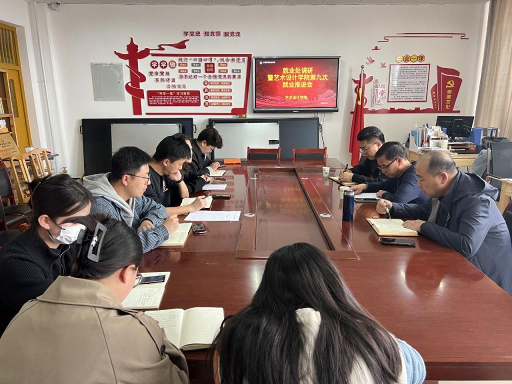 4月18日14时30分,艺术设计学院在18号楼406会议室召开就业工作调研暨第九次就业工作推进会。学校就业处处长李勇到会调研指导,艺术设计学院领导班子成员、毕业班班主任(辅导员)参会。会议深入分析当前就业形势,研究部署下一阶段重点工作,全力推进2025届毕业生高质量就业。