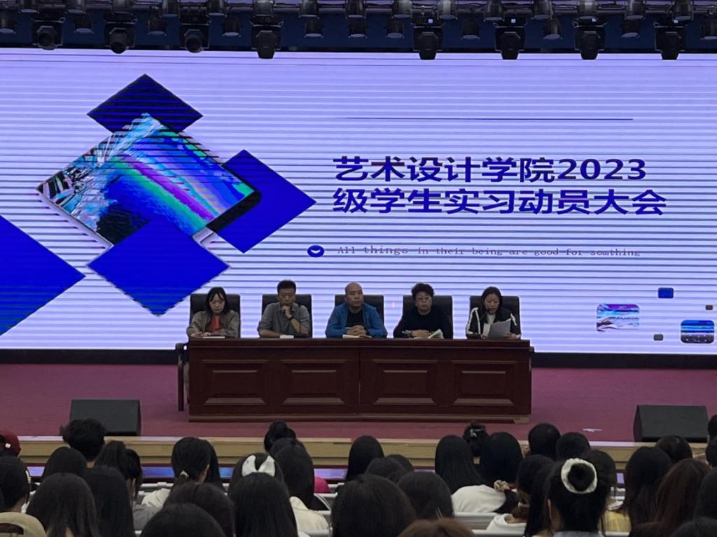 5月19日,艺术设计学院在第一教学楼二楼报告厅召开2023级学生实习动员大会。学院领导班子、实习就业干事、全体2023级学生及专兼职辅导员参会。会议由实习就业副院长主持。