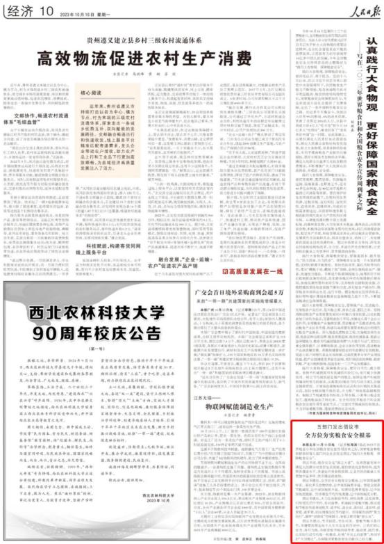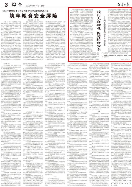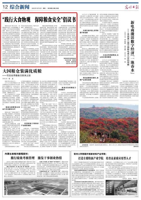 值此2023年世界粮食日和全国粮食安全宣传周到来之际,我们向全社会发出倡议:“践行大食物观 保障粮食安全”。