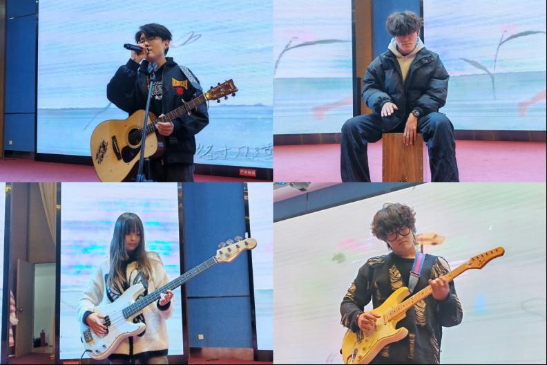 颁奖典礼结束后,文艺汇演在气势磅礴的《瑞狮送福》舞狮表演中正式拉开帷幕。本次汇演以“点燃青春活力”为主题,流行歌曲演唱,爱国主旋律演唱,舞蹈表演、乐队演奏、原创小品等节目轮番登场,为观众呈现出一场丰富的视听盛宴。多样的艺术表现形式生动表达出应用工程学院学子与党同心,接续奋斗的爱国情怀,以及志存高远、砥砺奋进的青春姿态。