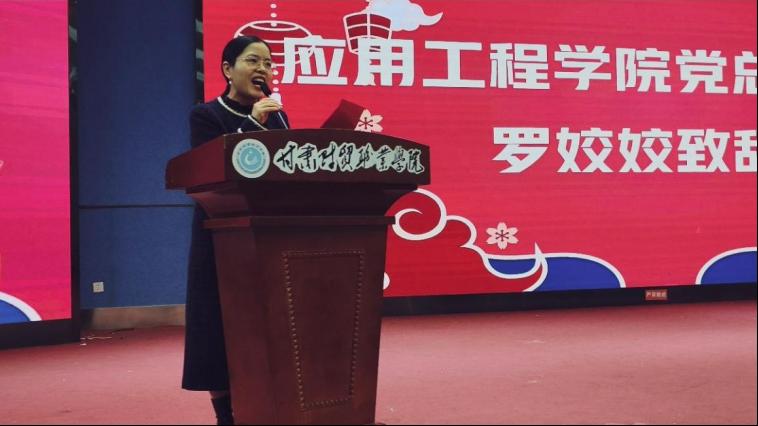 学院党委书记罗姣姣代表学院向广大师生致以最真心的问候和最诚挚的祝福。她表示,2024年学院坚定不移落实立德树人的根本任务,紧密围绕学院建设目标。在党建思政方面高引领、人才培养高质量,特别在就业建设和学生获奖方面成就斐然。新的一年里,希望全院师生始终坚持深入学习习近平总书记关于教育的重要论述,以更加饱满的热情、更加昂扬的斗志、更加务实的作风,为建设一个充满活力、更加具有创新力和影响力的应用工程学院而不懈努力。