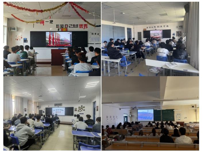 辅导员组织各班学生在教室集中观看,未在校的师生则居家观看。观看阅兵式过程中,师生们对受阅方阵整齐的队列、强大的气势赞叹不已,各种新型武器装备轮番上场更是博得了阵阵惊呼。这些装备信息化、智能化、实战化程度高,全面展示了我军体系作战能力、新域新质战力和强大的战略威慑实力;由功勋荣誉部队战旗组成的战旗方队,体现着抗战精神的薪火相传和优良传统的赓续弘扬;直升机高悬“正义必胜、和平必胜、人民必胜”的醒目标语飞过天安门上空,昭告着和平发展的时代强音。通过此次阅兵,师生们不仅感受到了我国强大的国防军事力量,也更加深刻地理解了伟大的抗战精神。