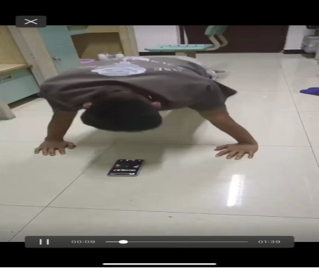 此次运动打卡活动涉及的运动项目有:平板支撑、跳绳、仰卧起坐等项目。即使受到了空间、器材的限制,同学们的参与热情仍然不减,将在宿舍运动的过程记录在视频中,展现了对运动的热爱。