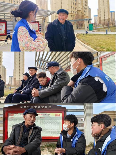 第三小组的志愿者们为社区的老人送上了问候和祝福,用实际行动将关爱和温暖送到老人心中。志愿者通过与老人们拉家常、关心他们的日常起居和身体健康并细致询问老人们生活情况的方式,获得了老人们的好感和信任,令老人们感到温暖和感动。志愿者们的活动在寒冷的冬日里为老人们带来了一缕阳光,温暖了他们的身心,体现了当代青年对老年群体的关爱,是对中华民族尊老爱幼优良传统的有力践行。
