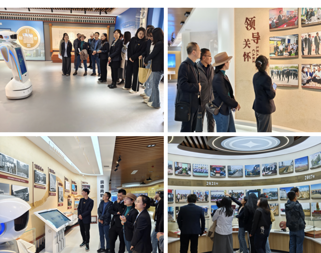 在校史馆内,党员们在智能机器人讲解员的带领下,依次参观了各个展厅。从追溯学院的历史脉络到展示其卓越的教育成就,从回顾学院经历的重大事件到感受各级领导的深切关怀,每一帧历史画面、每一项珍贵展品都如同穿越时空的桥梁,生动鲜活地重现了学院的辉煌历程。特别是通过VR校园骑行漫游这一创新体验,党员们仿佛骑行穿梭于校园的每个角落,亲眼见证了学院日新月异的变迁与勃勃生机的景象。