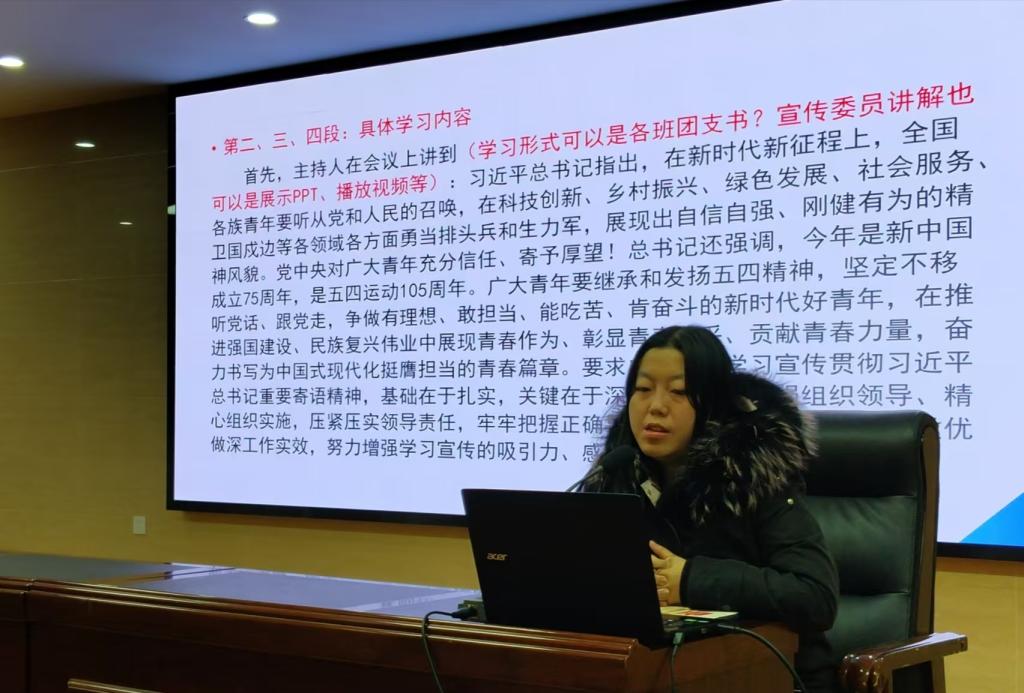 本次培训由团总支老师段又煜主讲,以如何写好时事新闻文本为切入点,围绕“如何认识应用文写作”“如何解读常见的应用文写作”“如何提升应用文写作能力”三个方面进行讲解,对通知类、总结类、新闻类、讲话稿类和项目类等常见的应用文文本进行了详细解读。段又煜老师强调应用文写作应当遵循“主题明确,逻辑清晰,内容生动,语言简洁”等原则,并指出:“应用文写作能力是大学生必备的语言素养,也是一种综合素养。”