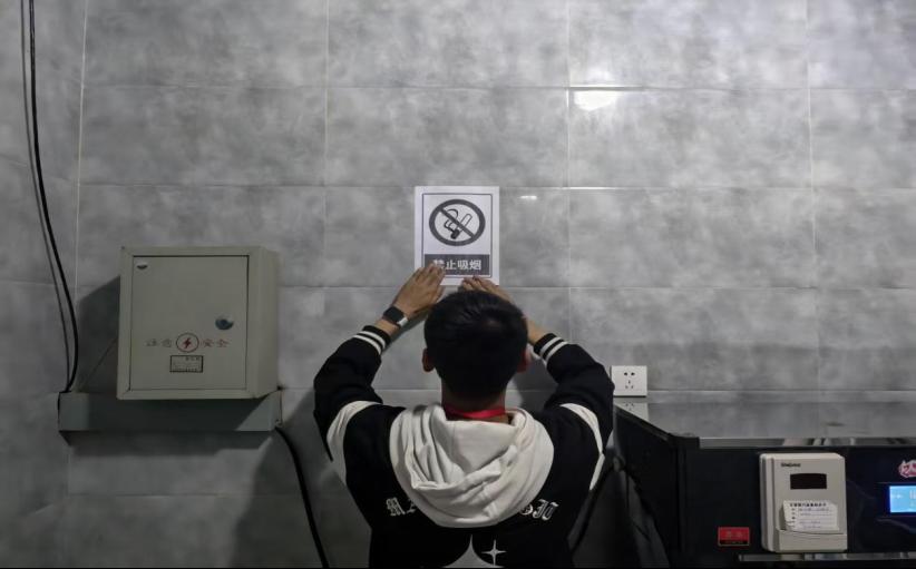 我院团总支组建了“禁烟卫士”志愿服务团队,安排志愿者在学院楼梯口、厕所等吸烟高发区域张贴禁止吸烟的标语;此外,志愿服务团队还采取了“日常巡查+随机抽查”方式,在吸烟“重灾区”安排志愿者对携带烟具和抽烟的同学进行登记劝导。