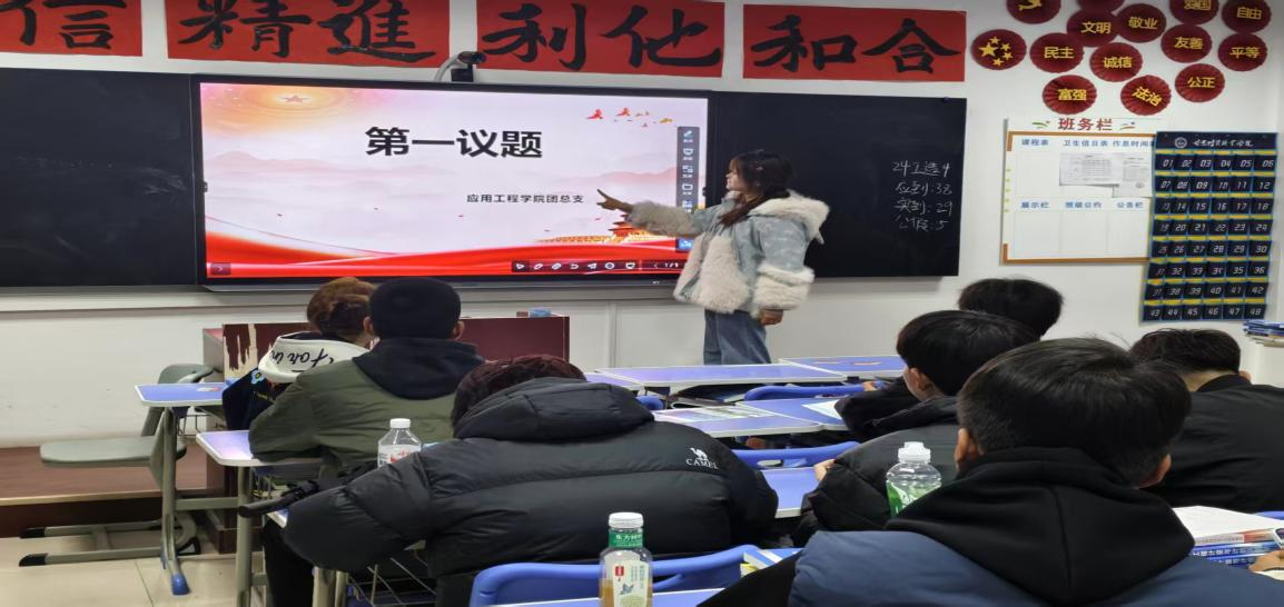 2025年10月16日晚,应用工程学院组织各班级开展专题学习会,学习《中华全国青年联合会第十四届委员会全体会议关于〈中华全国青年联合会章程(修正案)〉的决议》精神,将其作为“第一议题”的重要内容进行深入学习研讨。