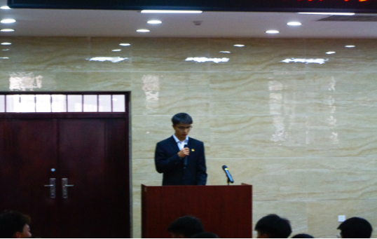 第四,院团委书记对21级学生干部队伍一年来的成果提出表扬和肯定,同时对新一届候选人提出期望,希望同学们做到以下三点:一是处理好工作与学习的关系;二是以积极进取的态度做好每一件事,做到言行一致,树立榜样;三是师生之间形成良性合作模式,架好师生良好沟通的桥梁。