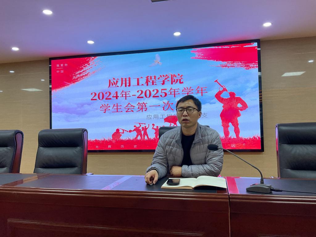 2024年11月13日,应用工程学院团学联合会举行了2024-2025学年第一次全体学生干部例会,会议由应用工程学院学管老师梁玉龙主持,团学联合会全体学生干部出席了此次会议。