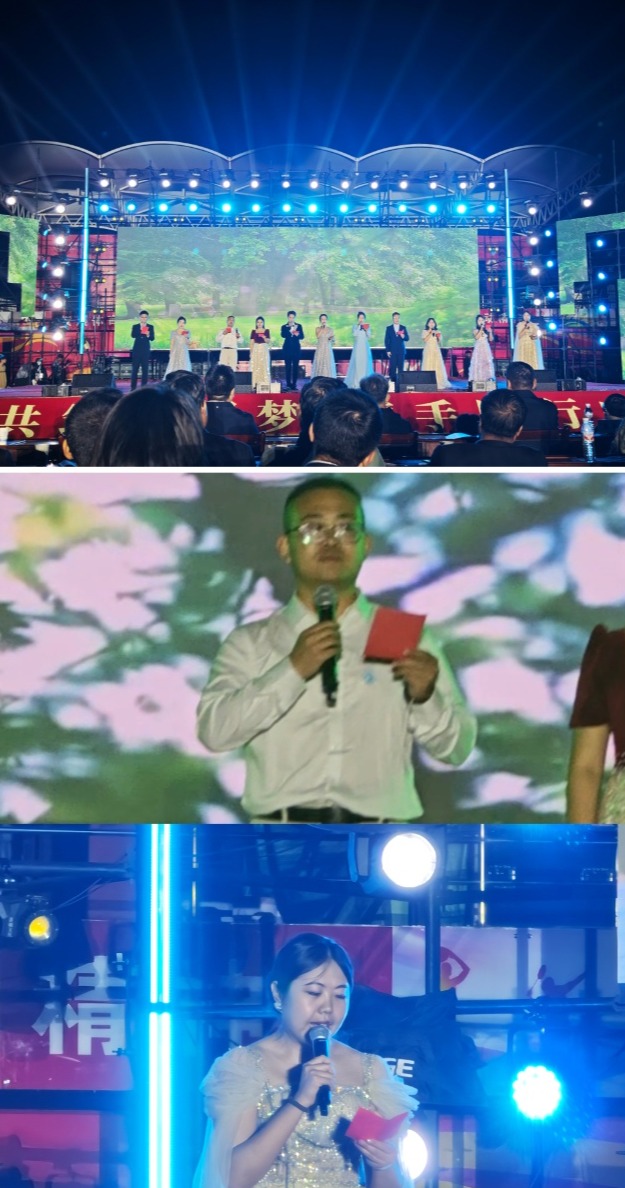 随后,我院团总支书记高天与辅导员褚晓佳,随同校团委组织的各二级学院团总支队伍,惊喜献唱,将现场气氛推向了高潮。他们以深情的歌声,不仅传递出国庆的喜悦,更代表我院向新生送上了美好祝福,充分展现了学院教师多才多艺且亲切友善的形象。