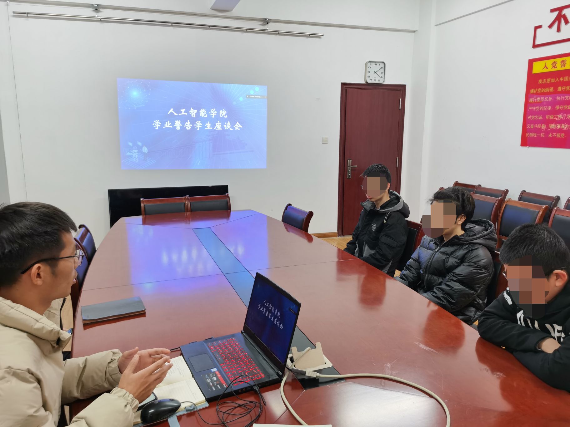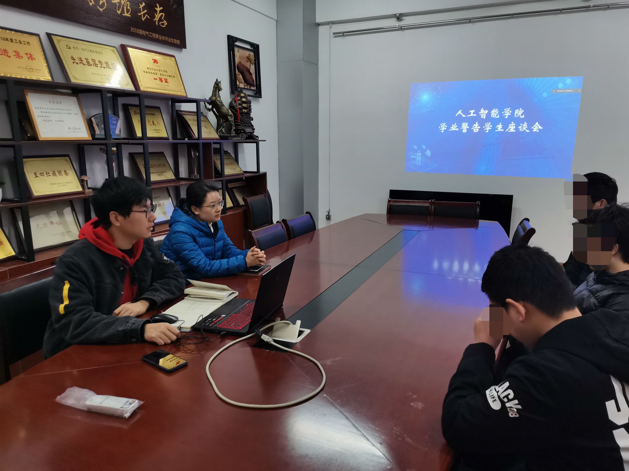 2020年12月7日下午,人工智能学院召开2020——2021学年第一学期学业警告学生座谈会,会议由人工智能学院辅导员侯硕主持,人工智能学院教学秘书韦伟、兼职辅导员赵立敢,以及本学期受到学业警告的五名学生参加本次会议,卫岗校区学生通过腾讯会议线上参会。