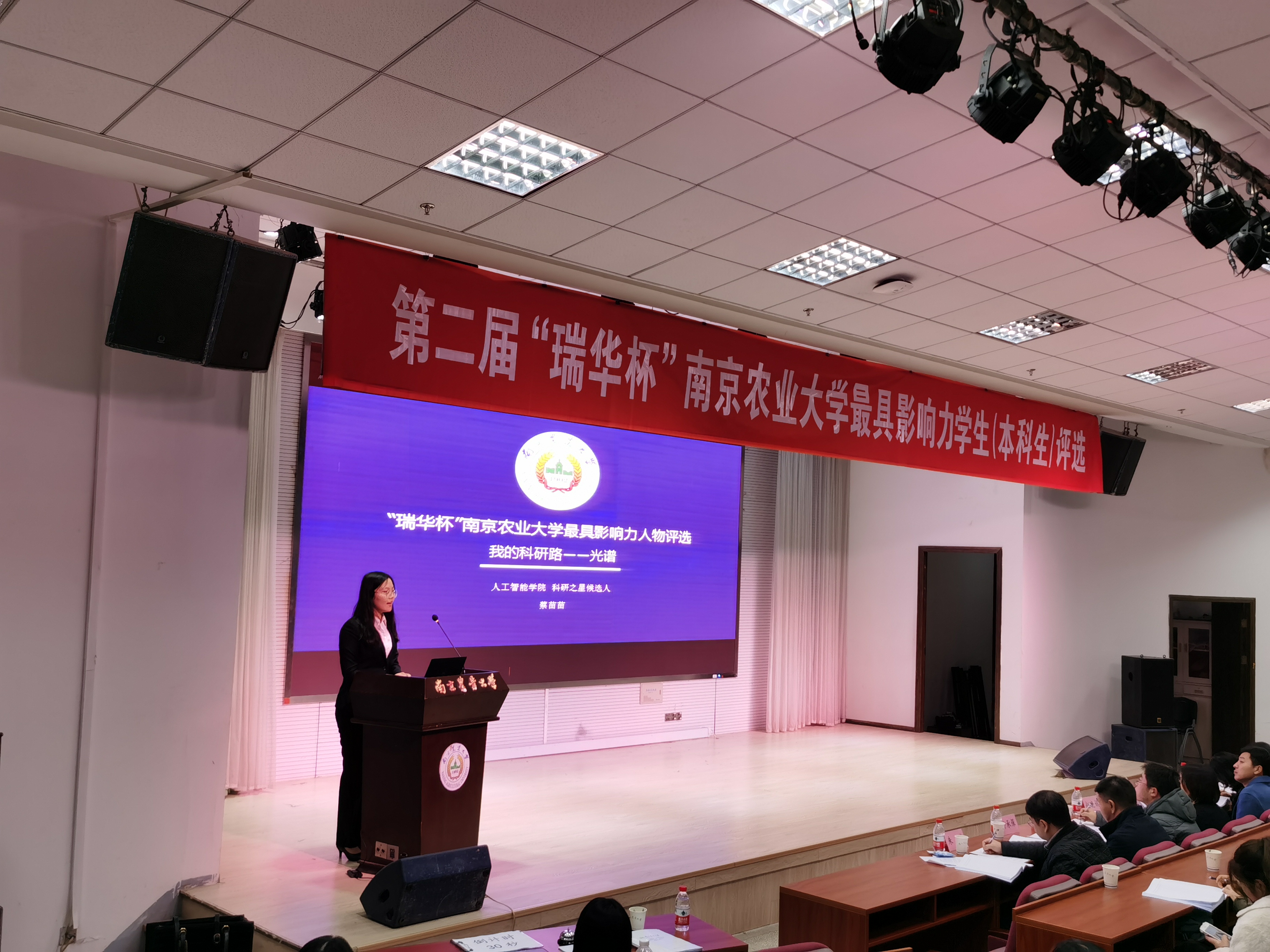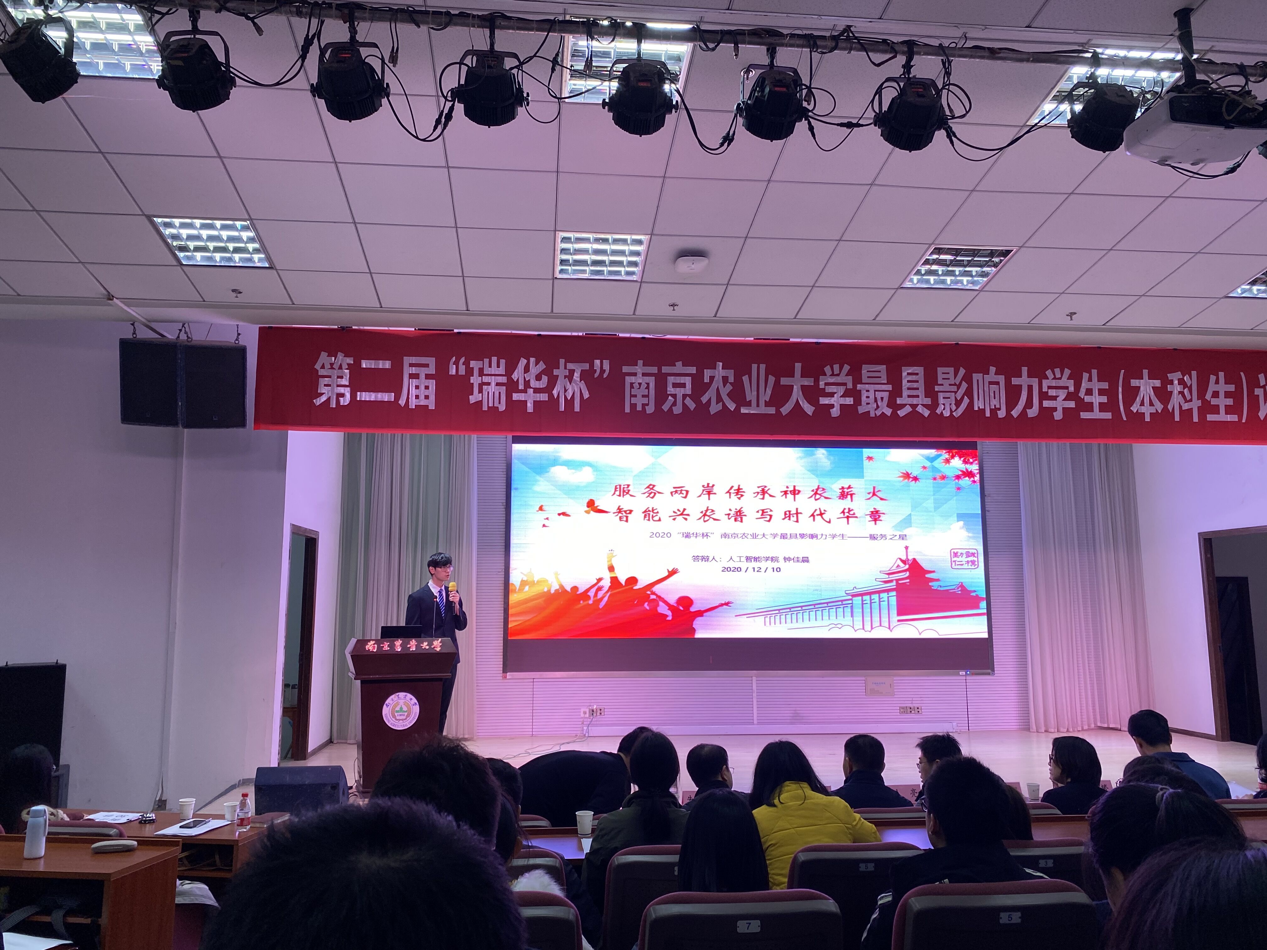 2020年12月10日晚,第二届“瑞华杯”南京农业大学最具影响力学生(本科生)评选活动在教四楼报告厅举行,30位在科研、勤学、志愿公益、创新创业等方面有突出表现的同学展开激烈角逐。最终,来自电信171班的蔡苗苗、吴佳鸿两位同学脱颖而出,获评“‘瑞华杯’南京农业大学最具影响力学生”,来自网工182班的钟佳晨同学获评“‘瑞华杯’南京农业大学最具影响力学生提名奖”。