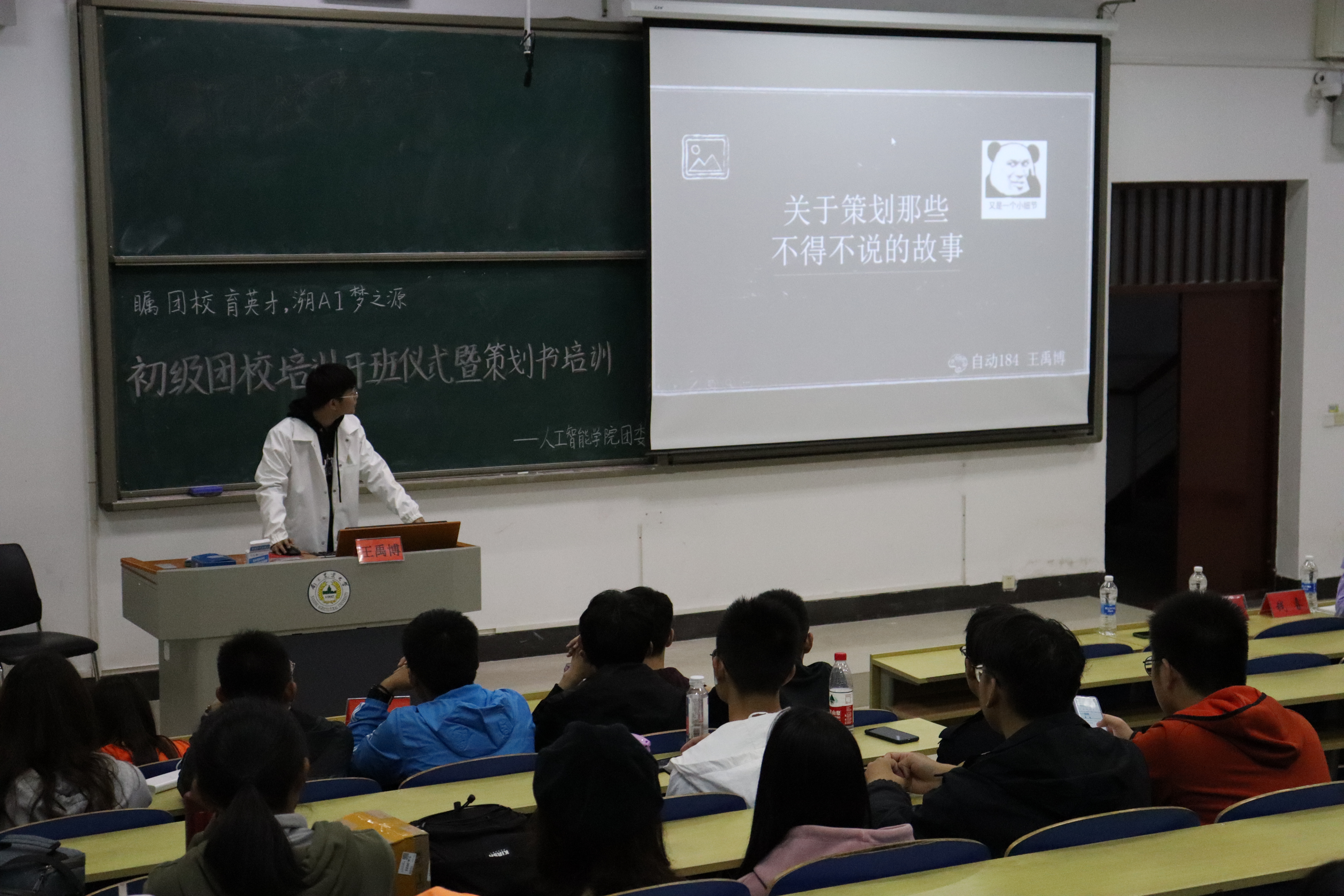 10月28日下午16时30分,在博远楼C101举行开班仪式暨策划书培训。人工智能学院学生工作办公室主任兼团委书记章棋、学生团委副书记王禹博、学生团委常委钱睿出席本次培训,监察部乔露露主持。首先,章棋通过分享自己的大学工作经历,向各位学生干部提出了“更高标准”,强调了学习的重要性,并祝愿学生干部在工作中能够有所收获。随后,钱睿宣读了《团校培训考核方式与要求》。接着,王禹博进行策划书写培训。讲解策划书写作规范,为学生干部答疑解惑。