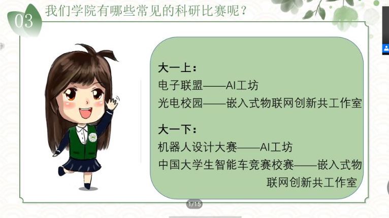 人工智能学院团委于9月19日下午14:00成功举办“齐聚南农,因‘AI’相遇”新老生“云”交流会。交流会分两个会场,一场面向电子信息大类新生,另一场面向计科、大数据、人工智能专业新生。