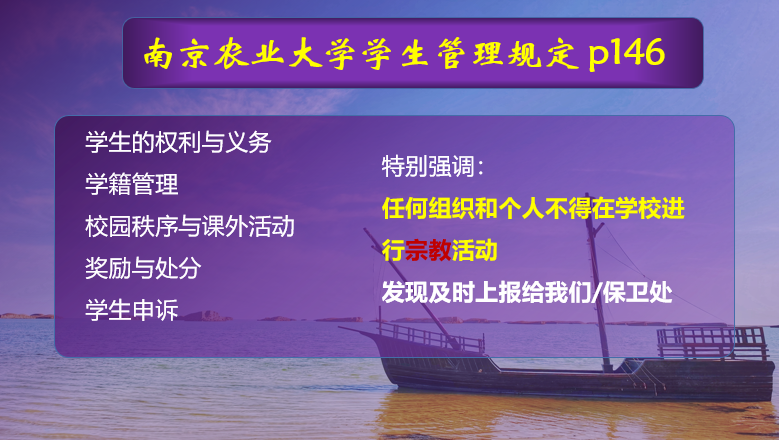 侯硕从在校行为、上课纪律、考试纪律、毕业学位、宿舍和第二课堂、日常事务、资助工作等七个方面进行介绍。这七个方面的内容覆盖了学生生活的各个方面,为大一新生解释了大学中可能会遇到的很多问题。
