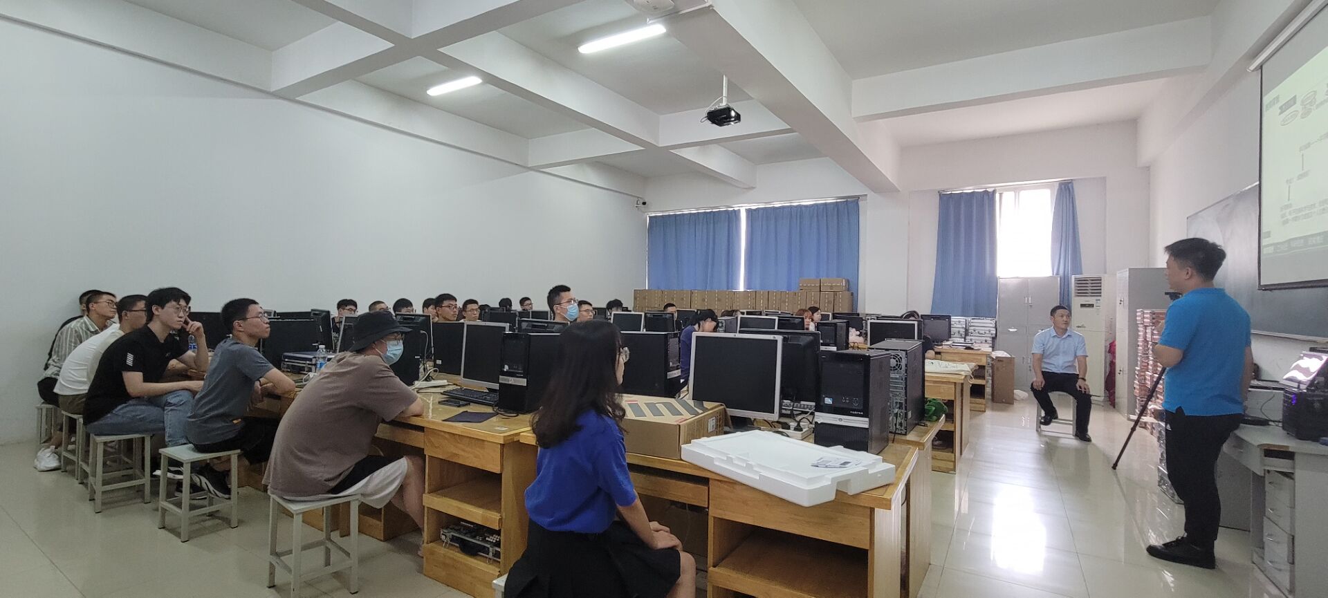 “院史院情介绍”板块,特邀学院党委副书记(主持工作)沈明霞教授担任主讲。沈教授从学院基本情况、学科分布、教学与人才培养、科研方向、平台建设等诸多方面进行了详细介绍。此外,结合案例生动阐述了人工智能产业链的现状与前景,极大地开拓了学生们的视野。