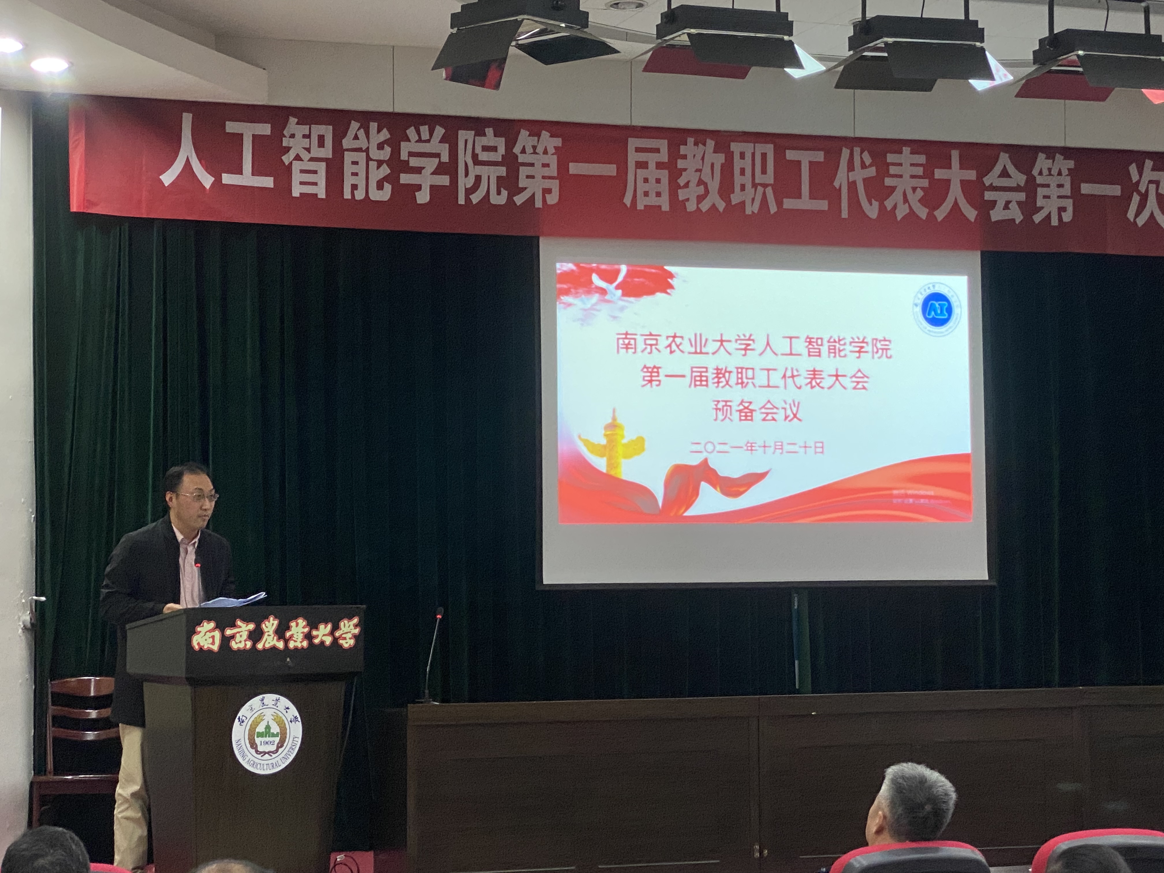 按照学校的整体工作部署,经学院党委研究决定,并报请校工会同意,10月20日下午,人工智能学院第一届教职工代表大会第一次会议在浦口校区图书馆报告厅举行,学院领导班子全体成员和当选代表参加了本次会议。会议由工会主席胡滨主持。