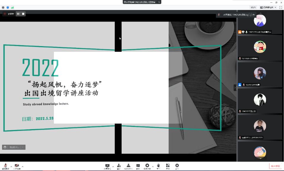 2022年5月28日下午2时,人工智能学院“AI科研月”——出国出境留学讲座顺利召开。留学学子仝曦熳、邓博阳、颜子涵、李启源出席本次讲座。讲座面向南京农业大学全体学生。