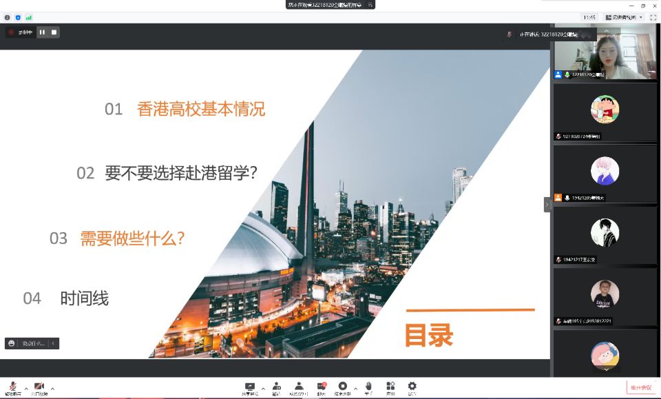 讲座开始,仝曦熳首先从香港留学教育入题,为我们介绍了香港大学的基本信息,并回答了留学该如何规划、香港适合哪些人群留学等方面的问题。同样从分享留学规划开始,邓博阳主要介绍了英国的大学环境并点明了去英国留学的必要条件,更强调对于留学应抱有积极态度。与前两位不同,颜子涵则是从个人经验出发,分享了自己申请留学的经历以及获得的教训,供同学们参考。之后,李启源在日本本土文化和教育制度两方面对赴日留学进行了分析,具体地阐释了留学日本的优势,给予同学们更多留学选择。此外,四位留学学子均留下了联系方式以便于和同学们更好地交流留学相关问题,讲座在一片欢声笑语之中结束。