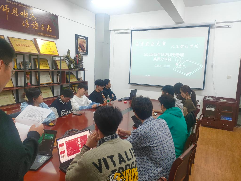 2022年10月15日晚,人工智能学院22级新生班级团务助理实操分享会在育贤楼B311成功举行。人工智能学院各新生班级团务助理出席本次活动。