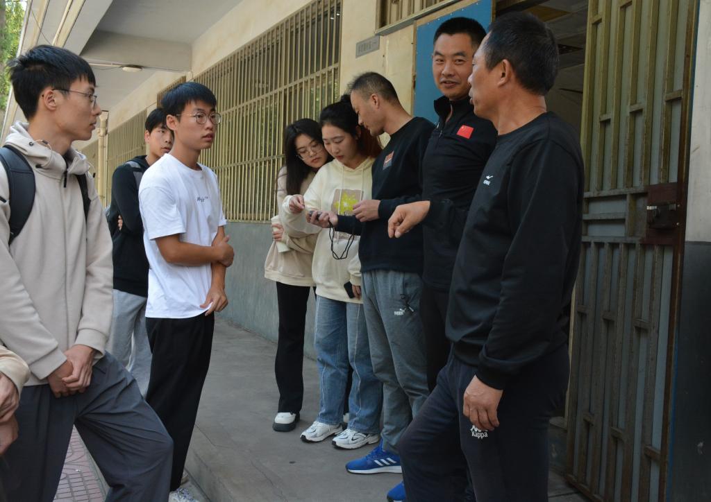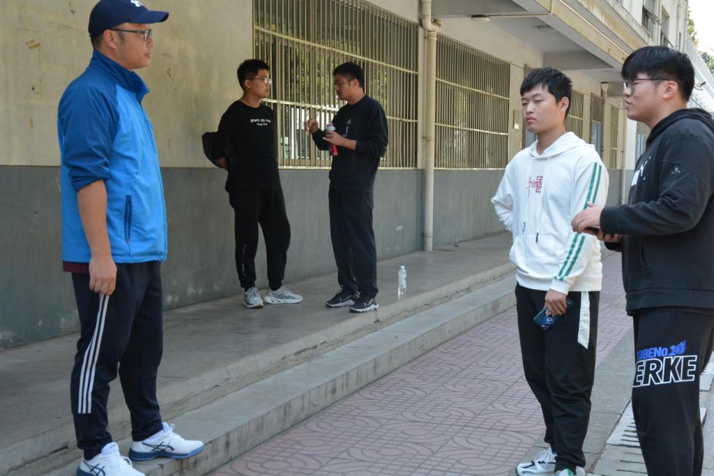 2022年10月14日13:10,人工智能学院在操场器材室举办院运动会裁判培训会。会议由体育教研室主任王程负责总讲,由体育部第三教师支部党员董立兵、杨伟、吴亮、李强、胡冬临、李征、徐梁讲授各项目评判标准及注意事项。王程首先确定机动组、检录组、统计组、引导组的工作人员组成是否完善。接下来,他着重强调了针对观众安全的保障工作,要求工作人员做好秩序维护,避免造成意外伤害的情况。随后,由各位老师分别对田赛、竞赛不同工作人员进行细化培训,介绍了一些特定项目成绩的测量方法。最后,同学提出问题,老师进行解答。