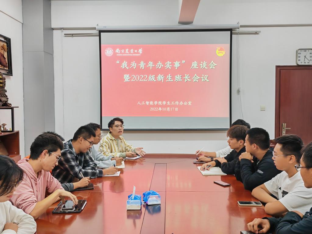 为进一步宣传贯彻党的二十大报告重要精神,强化班委干部队伍建设,助力2022级新生“启航”大学新征程。2022年10月17日18:00,我院在育贤楼B311会议室组织召开“我为青年办实事”座谈会暨2022级新生班长会议。新生辅导员李洪老师主持会议,2022级全体班长参加。