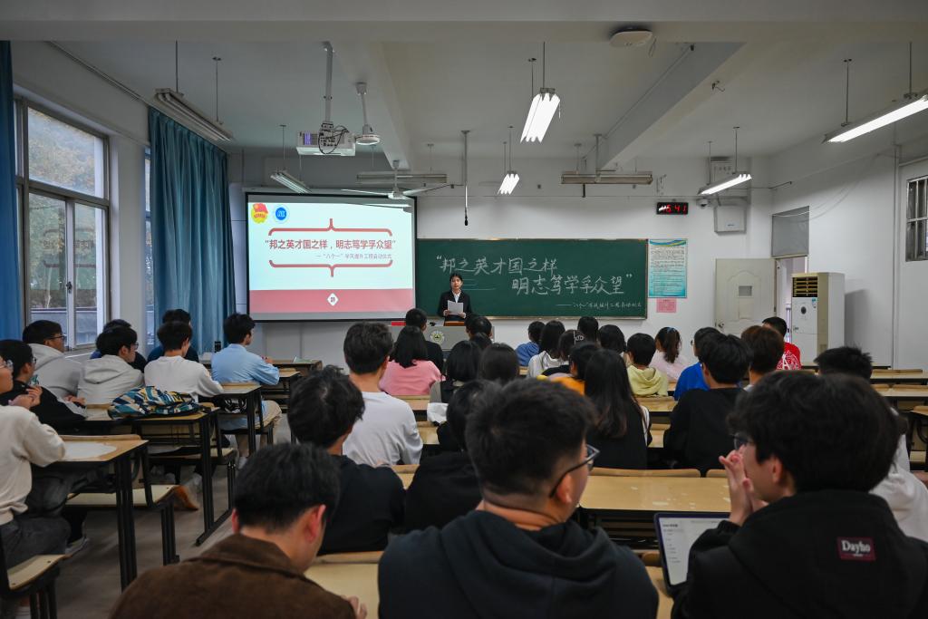 活动伊始,谭彩昕首先介绍“八个一”学风提升工程的背景、主要内容、进行的流程和未来规划。接着她明确项目要求,讲解“八个一”学风提升工程的初衷及意义,提高团支书对“八个一”学风提升工程的认识。随后,“第十批校杰出团支部”代表夏烨分享经验。夏烨先向团支书们展示徽章、全家福等,接着讲述自己团支部通过班级团建、创建新媒体平台,以小组制开展创新创业活动等方式,将“八个一”融入班级建设,形成优良的学风,为团支书们后续工作的开展提供良好示范。随后,魏宇宁讲述提升学风以及提高团支部工作效率的重要性,并且与各班团支书进行面对面交流,有针对性地答疑解惑,让各团支书理解学风建设的意义与作用,促使各团支部积极进行学风建设活动。活动尾声,全员合影留念,此次活动在掌声中圆满落幕。