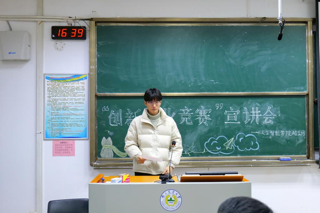 2022年12月1日下午16:30到18:00,人工智能学院AI工坊在汇贤楼C202举办了“创新创业竞赛”宣讲会。本次宣讲会涉及“互联网+”大学生创新创业大赛、“创青春”大学生创业大赛、“挑战杯”竞赛。宣讲会旨在让同学们了解“三大赛”的内容、流程,并从中学习到相关知识技能。