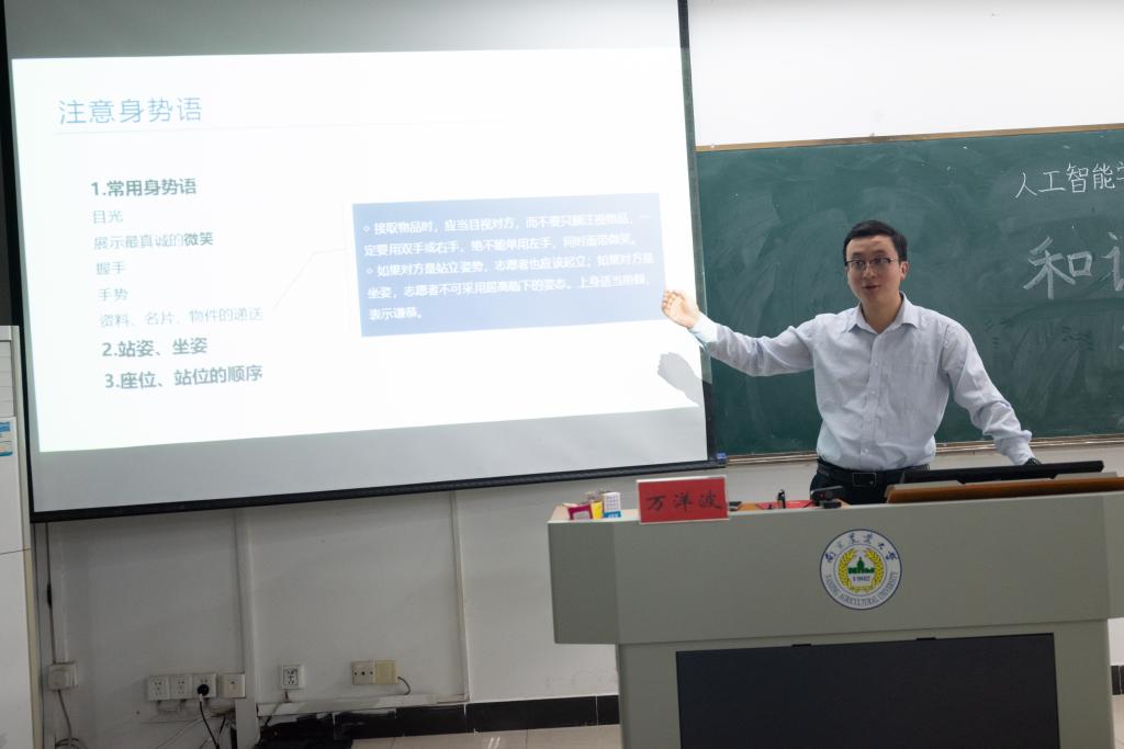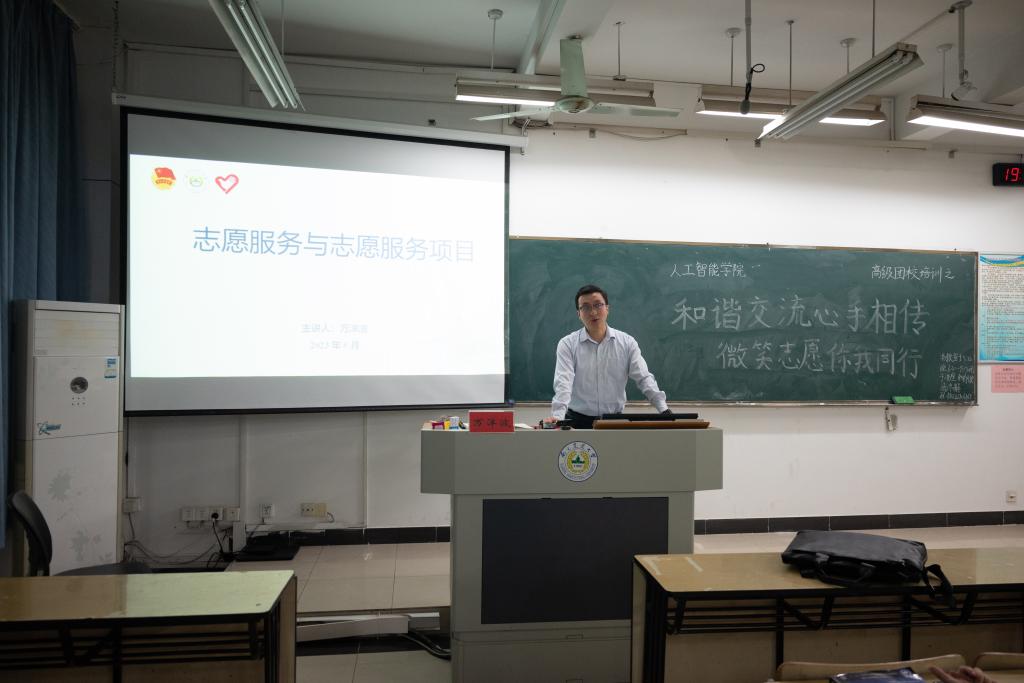2023年5月12日晚七点,人工智能学院在汇贤楼C201举办高级团校培训之“和谐交流心手相传,微笑志愿你我同行”志愿服务经验分享交流会。本次分享会特邀万洋波老师作为主讲人,讲解志愿服务的各项事宜。