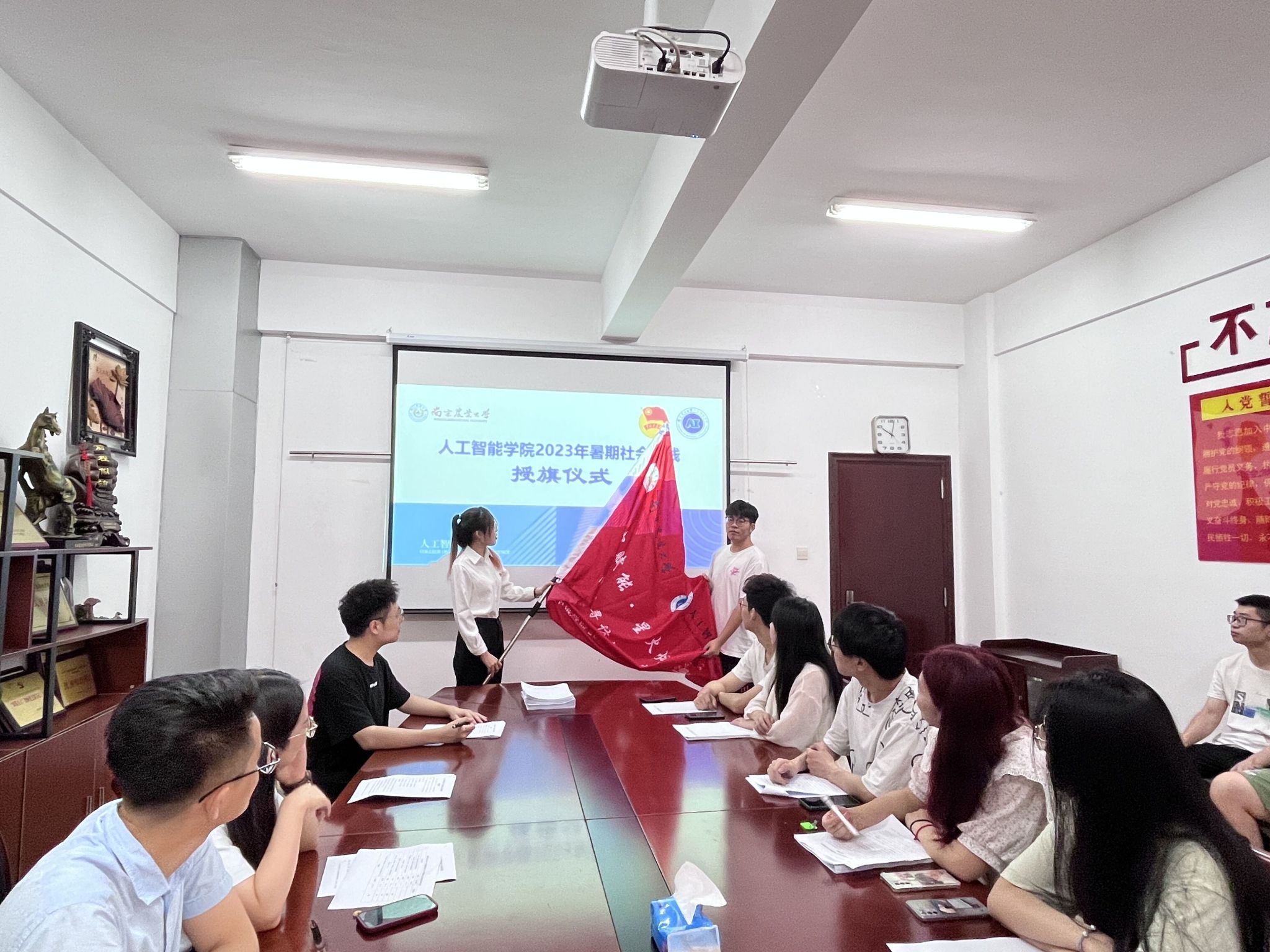 为深入学习习近平新时代中国特色社会主义思想和党的二十大精神,充分发挥第二课堂作用,引导和激励全院广大青年投身社会实践中。南京农业大学人工智能学院于6月30日在育贤楼B311会议室举行2023年暑期社会实践出征暨授旗仪式。院学生工作办公室主任兼团委书记章棋,院学生工作办公室副主任兼团委副书记湛斌,本科生辅导员李洪、于佳琪出席本次会议。各重点实践团队负责人、信息员参加本次出征仪式。