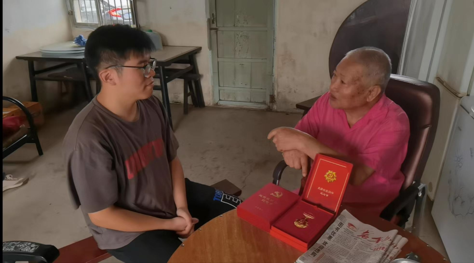 此外,实践团还走访了当地的老党员、革命老军人。采访中具有代表性的革命前辈是年近90的吴建良——一位党龄超过50周年的老党员。在交流中吴建良提到了他在毛泽东思想的熏陶下,20岁时参军入伍,在部队中磨练革命意志,后经介绍和考察加入中国共产党。退伍后,他积极投身于基层工作,始终秉持着为人民服务的宗旨。交谈最后,他也对广大青年后辈提出殷切期望,当代青年要铭记历史,传承革命精神,弘扬红色文化,为全面建设社会主义现代化国家而努力奋斗。