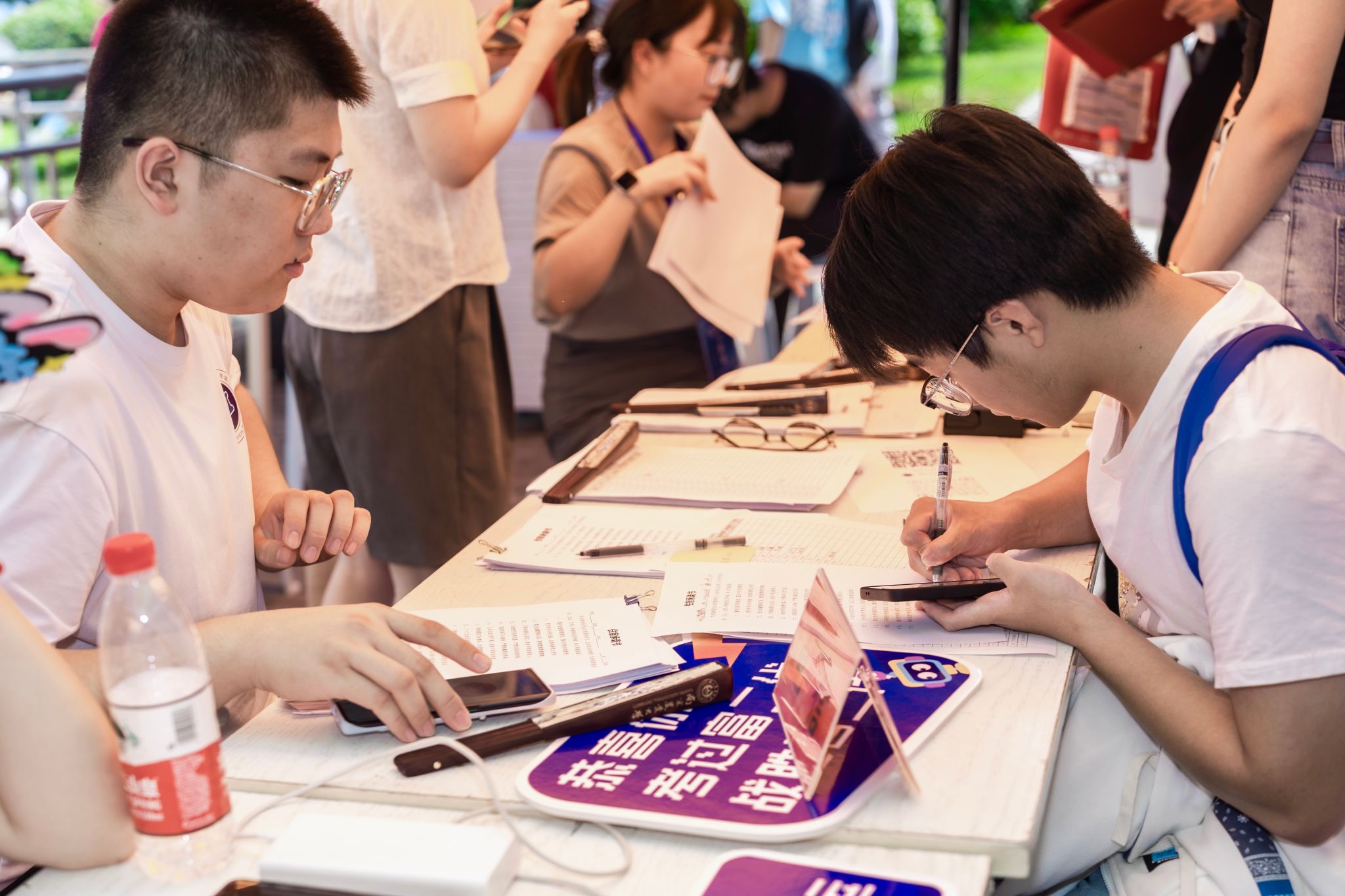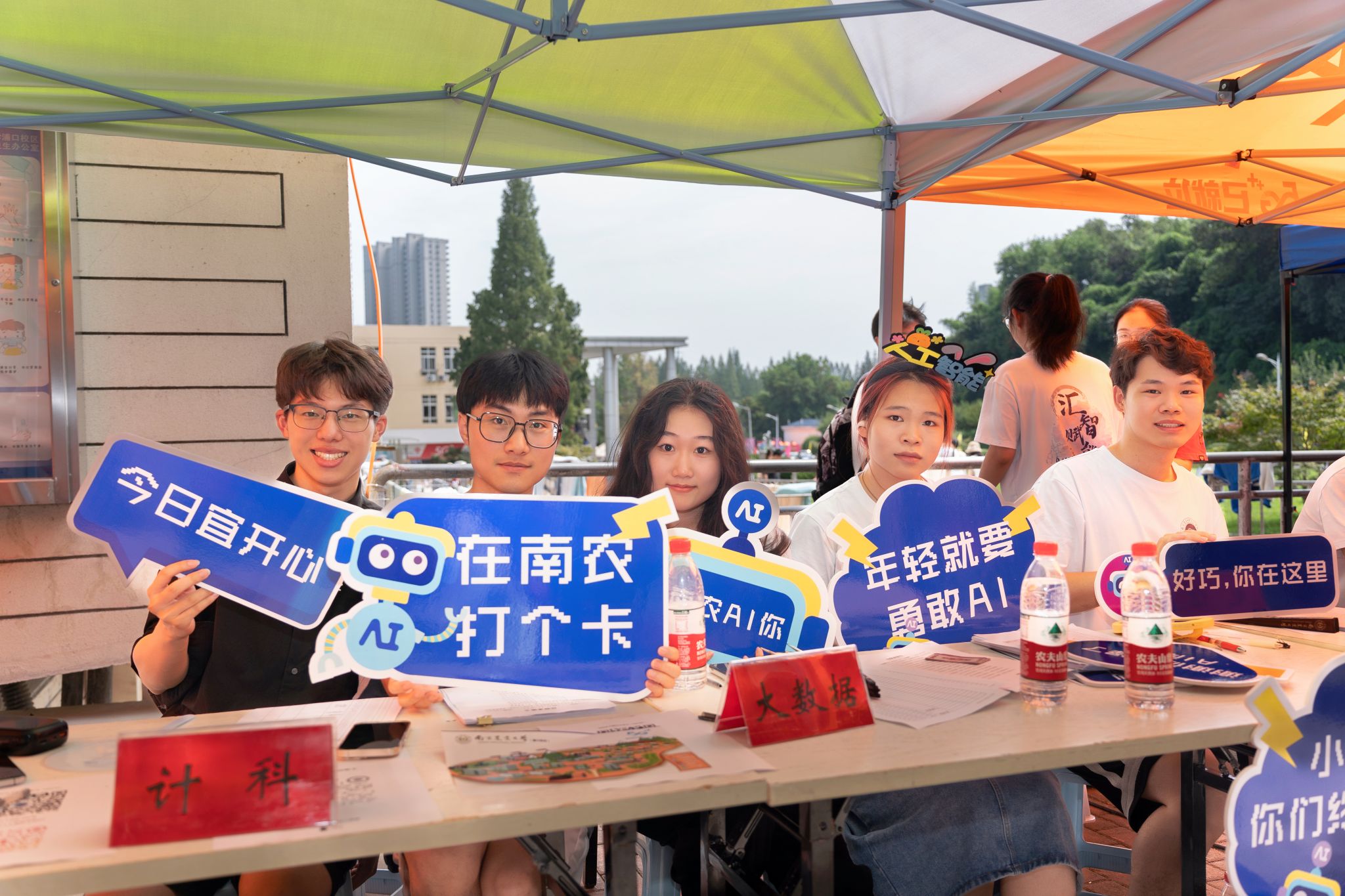 为确保迎新工作顺利开展,学院领导高度重视,组织召开迎新工作协调会,统筹制定迎新方案,严密安排后勤保障工作。从工作人员分工,到师生引导及志愿者的招募,再到新生报到点位的特色氛围布置,学院始终坚持以生为本。我院学生组织全力保障迎新工作安全有序执行,精心落实各项温馨服务,包括校内志愿咨询服务、校门口引导、行李搬运、入住手续陪同办理、迎新小游戏等。报到现场设置了“汇智•赋能”主题喷绘签名墙,由学生团队自主研发的蓝莓采摘机器人正在一旁进行采摘演示,吸引了众多萌新围观体验!此外刮刮乐抽奖和投篮,环节,为新生们送上了学院定制帆布袋和文创礼品。
