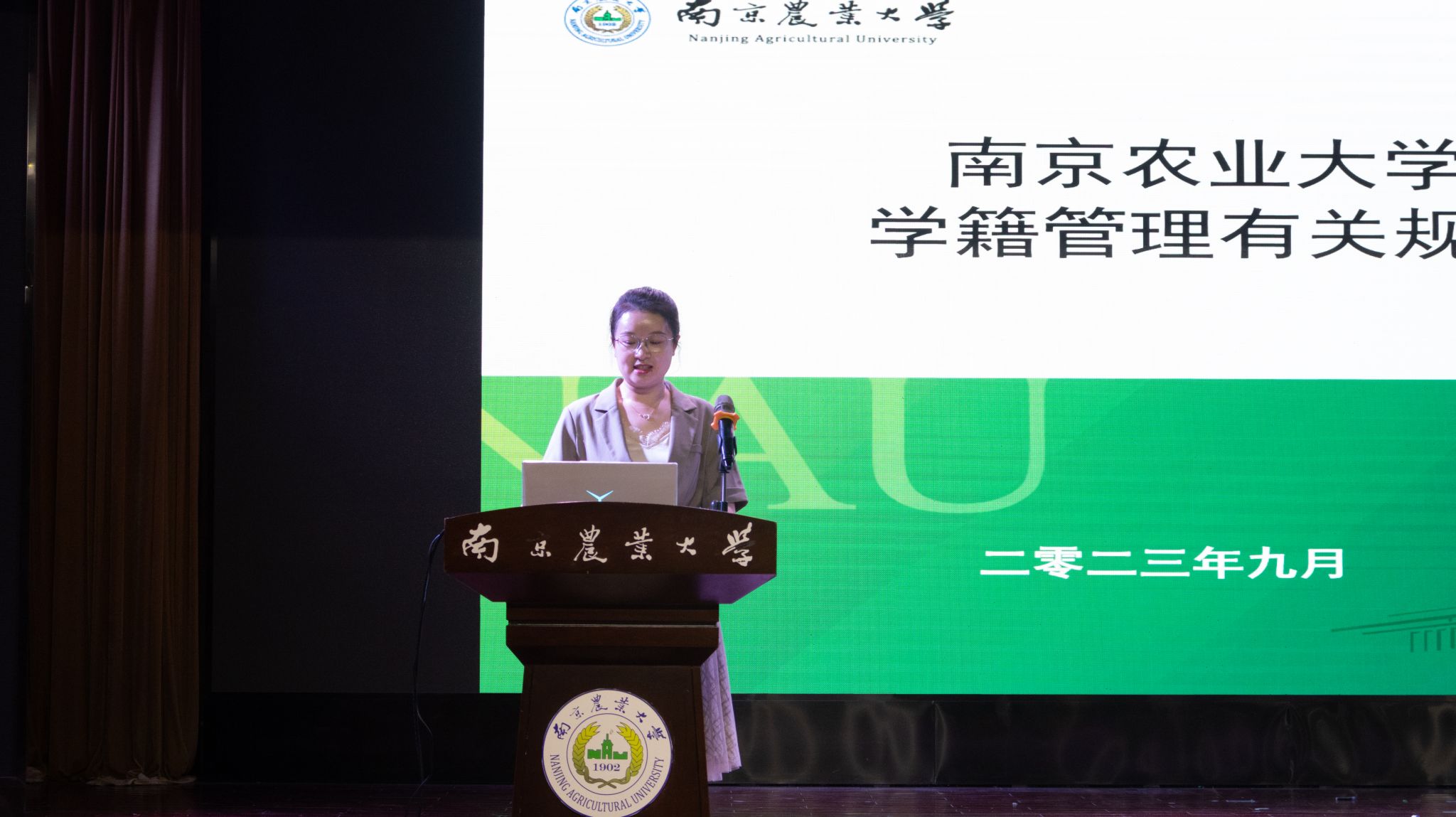 会议伊始,院党委书记田永超代表学院对全体新生的到来表示真挚欢迎并作校史院情专题教育,他从百年历史沿革和发展成就两个方面对南农校史校情进行详细讲解,并从学院师资力量、党建工作、学科建设、科学研究、人才培养等方面,介绍了我院发展历程及各系、各专业的基本情况。田书记勉励同学们要尽快适应身份转变,利用好学院的资源和平台,努力成长为全方位发展的优秀人才。