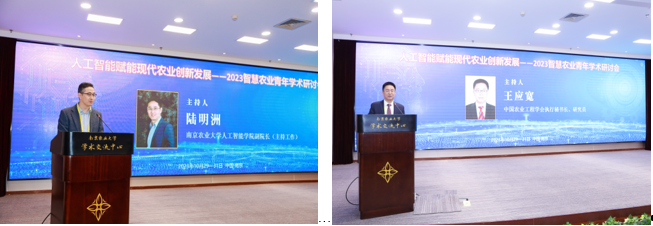 上午的特邀报告环节,分别由南京农业大学人工智能学院副院长(主持工作)陆明洲和中国农业工程学会执行秘书长王应宽主持。