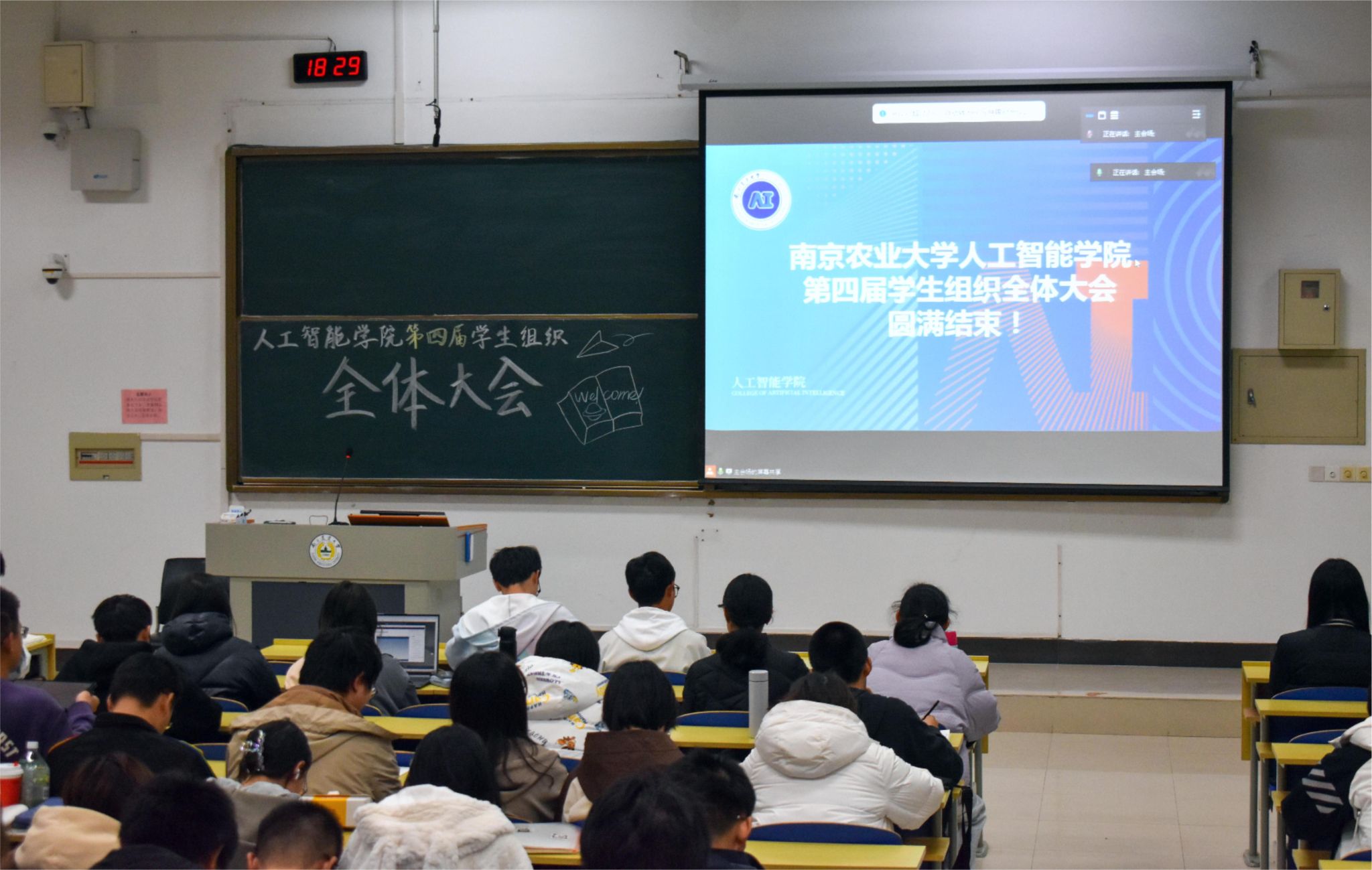 2023年11月24日晚,南京农业大学人工智能学院以博远楼C101为主会场,博远楼C201、C501为分会场,召开了第四届学生组织全体大会。人工智能学院党委副书记吕一雷,院学生工作办公室主任章棋、副主任湛斌,院本科生辅导员李洪、封筱、于佳琪,院学生组织全体成员,22级、23级各班班长及团支书出席了本次会议。会议由王博雯主持。