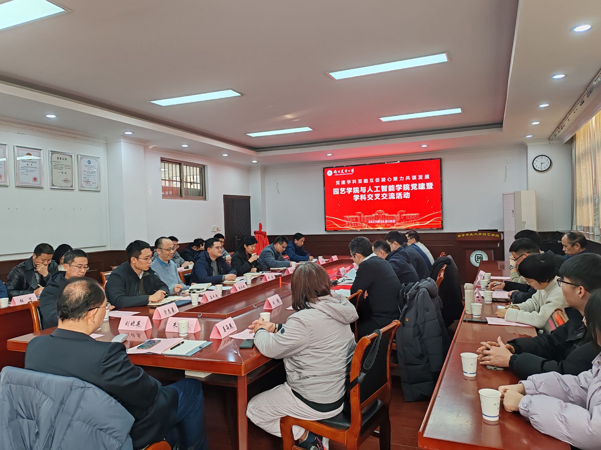 12月28日下午,人工智能学院党委联合园艺学院党委,在南京农业大学园艺学院会议室B4003开展“党建学科双融互促,凝心聚力共谋发展” 党建暨学科交叉交流活动。人工智能学院党委书记田永超、副院长(主持工作)陆明洲及领导班子成员、园艺学院党委书记韩健、院长陈素梅及领导班子成员、两院相关教师代表一同参会。会议由园艺学院副院长陶书田主持。