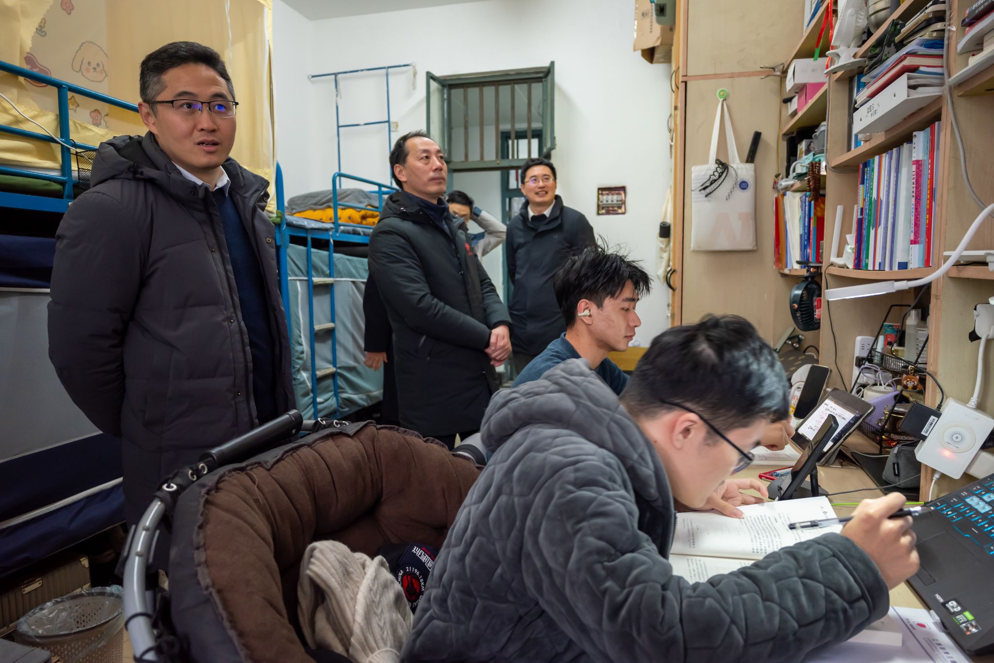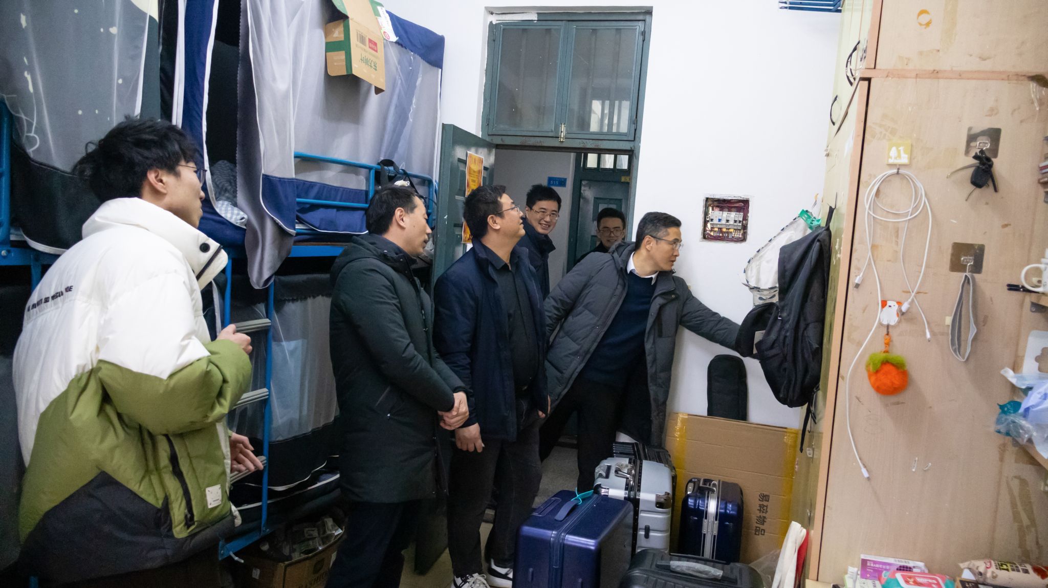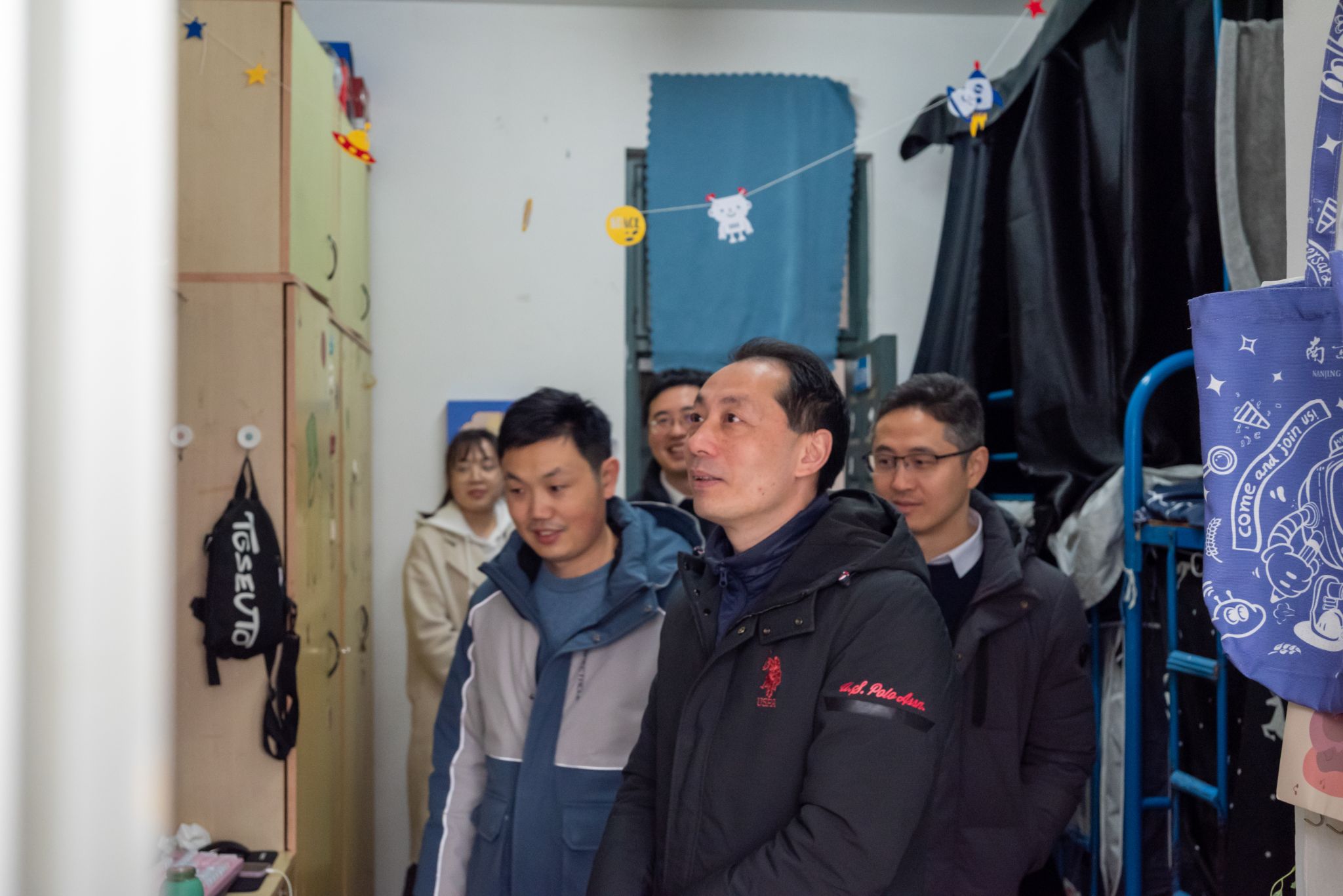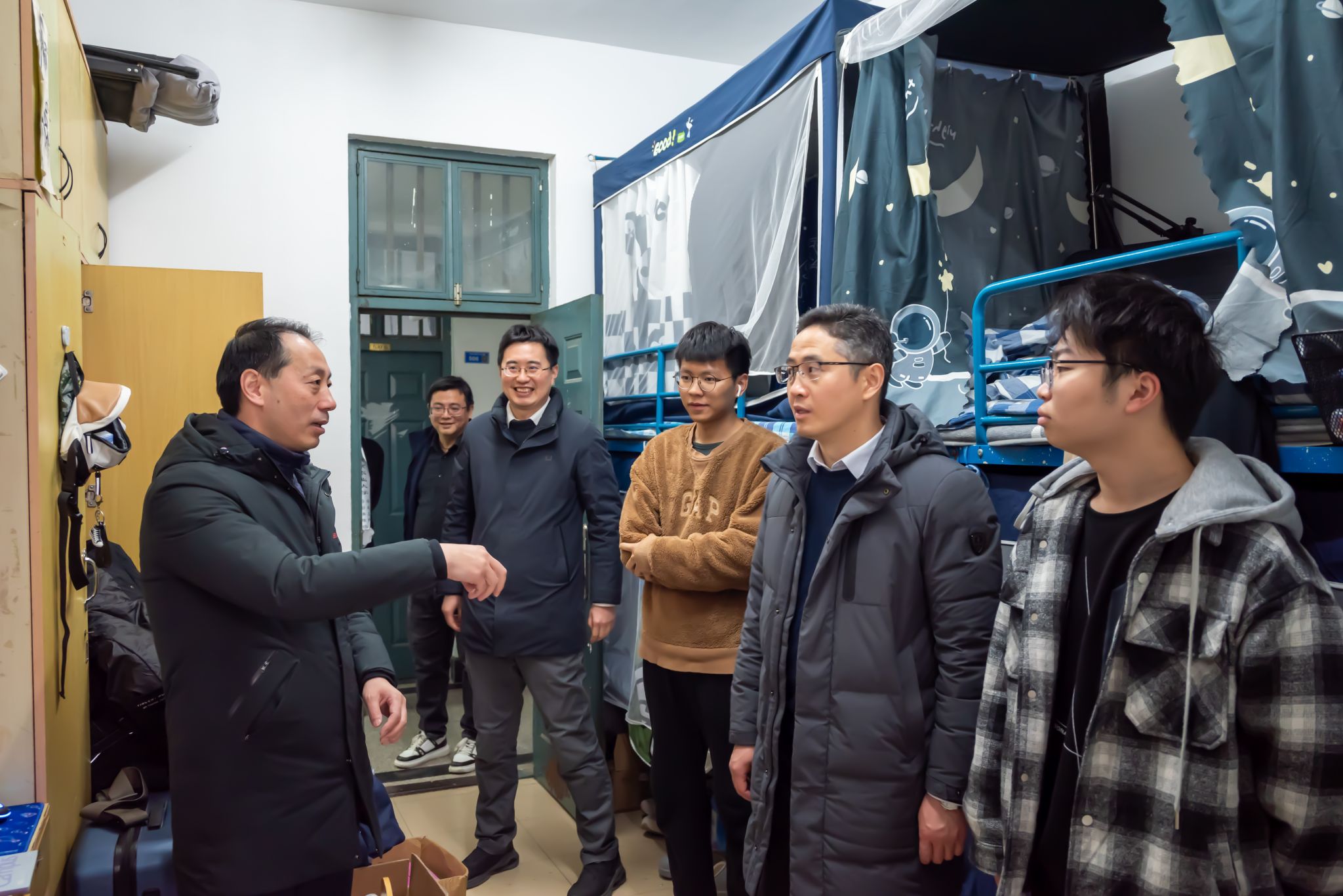 新学期新气象,为进一步加强常态化学生宿舍管理,确保各项学生工作有序平稳开展,更好地帮助同学们适应生活和学习节奏,2024年3月4日上午十点,人工智能学院党委书记田永超、副院长陆明洲(主持工作)、党委副书记吕一雷、自动214班班主任刘龙申、自动212班班主任陈卫、学工办副主任湛斌、辅导员于佳琪一同深入学生宿舍,开展宿舍走访工作。