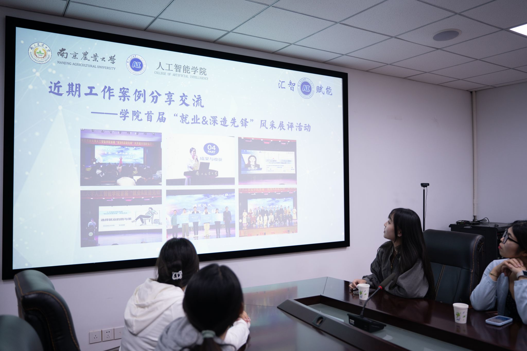 交流会伊始,我院团委外联与生涯促进部部长易兰芳,作为代表首先分享了部门在“外联”与“生涯”两大方面的日常工作开展情况;随后,她结合近期部门成功承办的人工智能学院首届“就业&深造先锋”风采展评活动经历,介绍了从策划到成功举办,过程中的经验与不足。