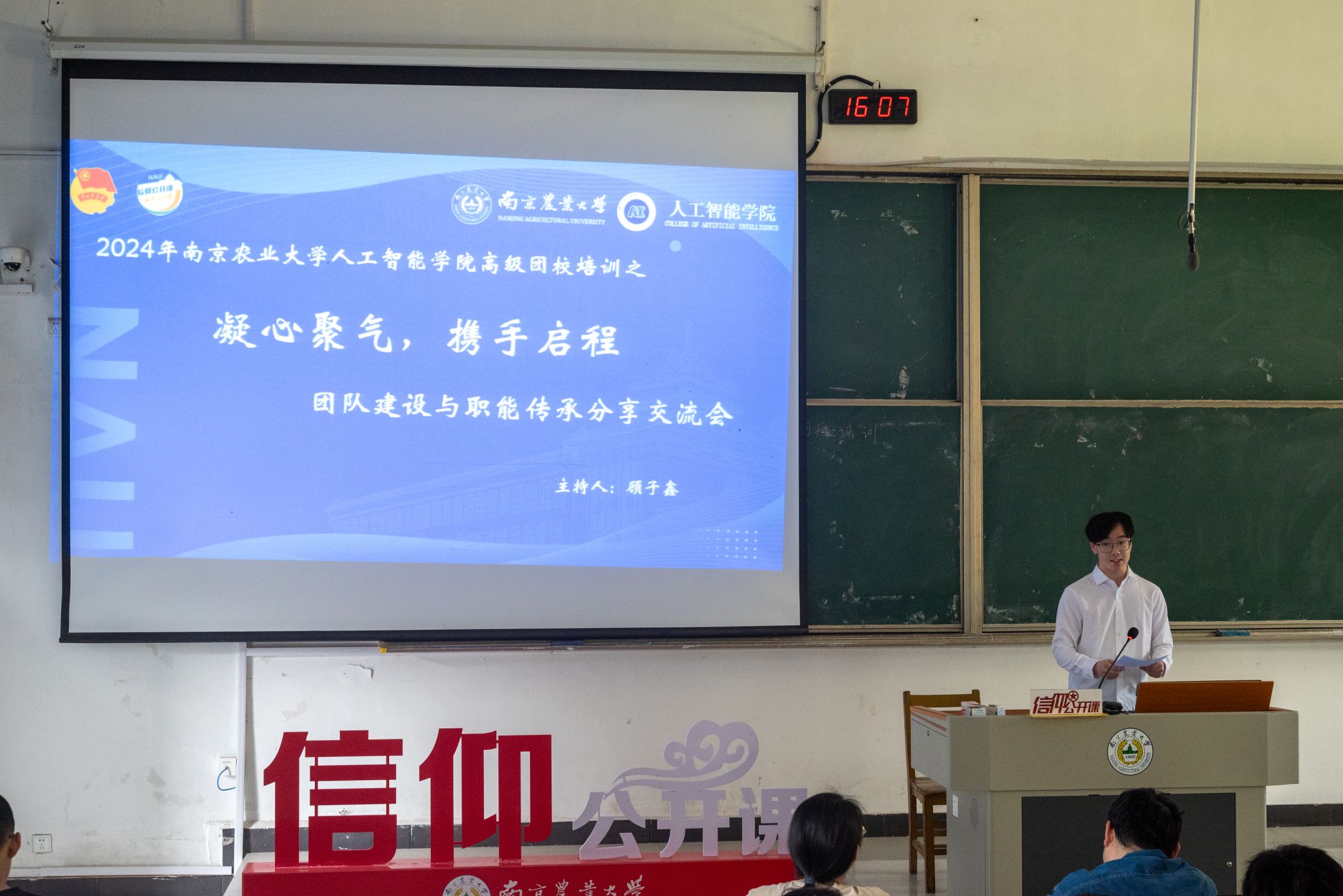 为进一步提高青年学生干部素养、锤炼学生骨干作风,增强各组织凝聚力,更好地推动我院学生工作的发展,人工智能学院团委于2024年4月26日在浦口校区勤学楼举办了信仰公开课系列高级团校培训之“凝心聚气,携手启程”团队建设和职能传承分享交流会。人文与社会发展学院本科生辅导员林延胜,人工智能学院2020级本科生施芸芸受邀担任主讲。人工智能学院本科生辅导员魏宇宁、学院全体学生组织干事参与了本次培训。