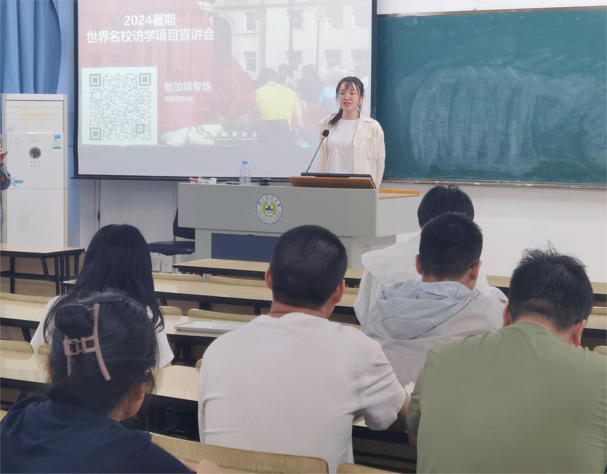 为拓宽学生全球视野,促进多元文化交流,提高学生综合竞争力,进而帮助学生确立前进方向,2024年5月16日晚18;30,南京农业大学人工智能学院邀请全美思行国际教育闪老师在汇贤楼C201为浦口校区学子开展2024年暑期新加坡线下名校探访项目说明会。人工智能学院本科生专职辅导员于佳琪出席本次活动。