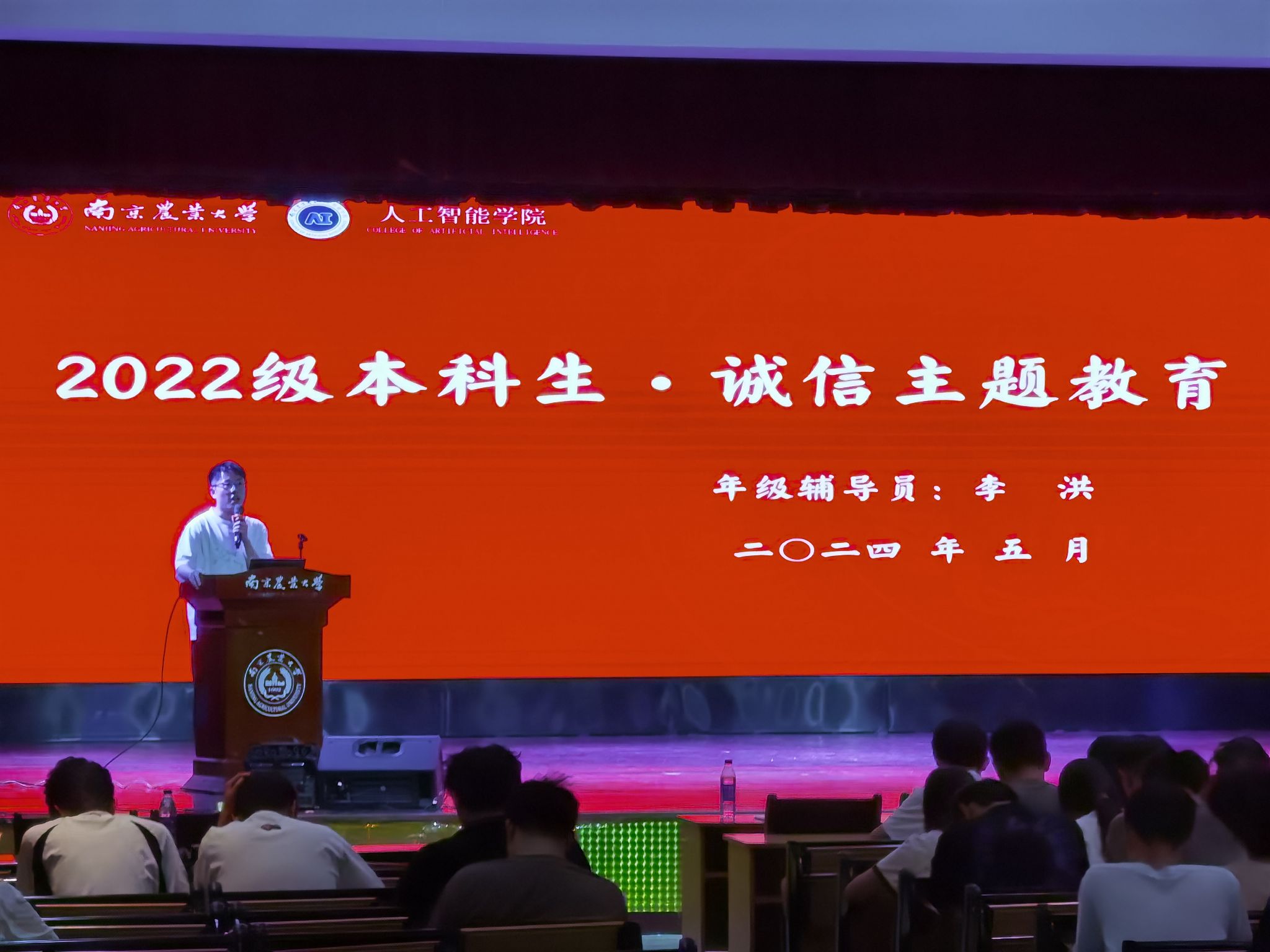 5月22日下午,人工智能学院在浦口校区大学生活动中心召开2022级本科生年级大会。学院党委副书记吕一雷、学工办主任湛斌、本科生辅导员李洪以及2022级447名本科生参与会议。会议由湛斌主持。